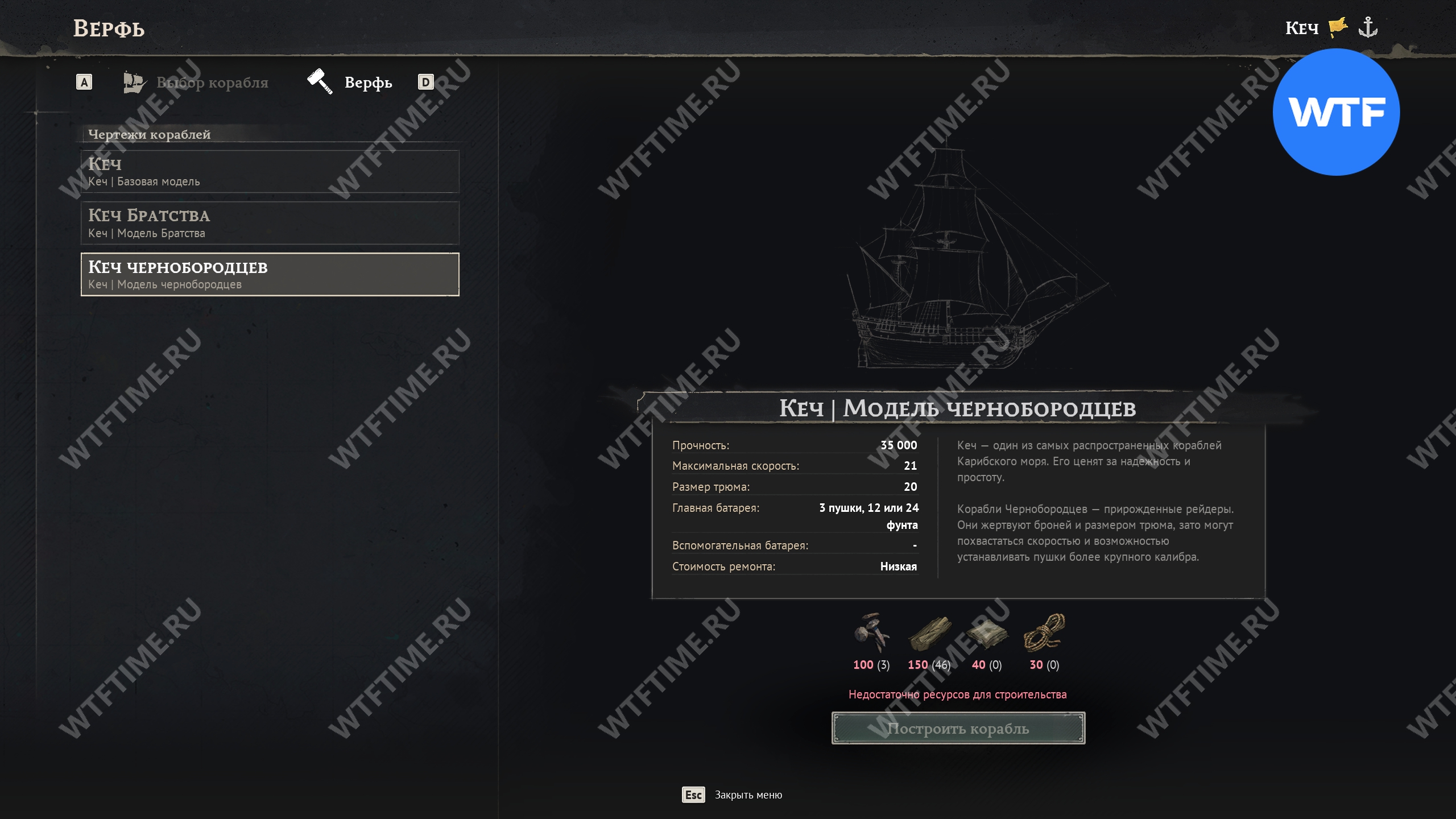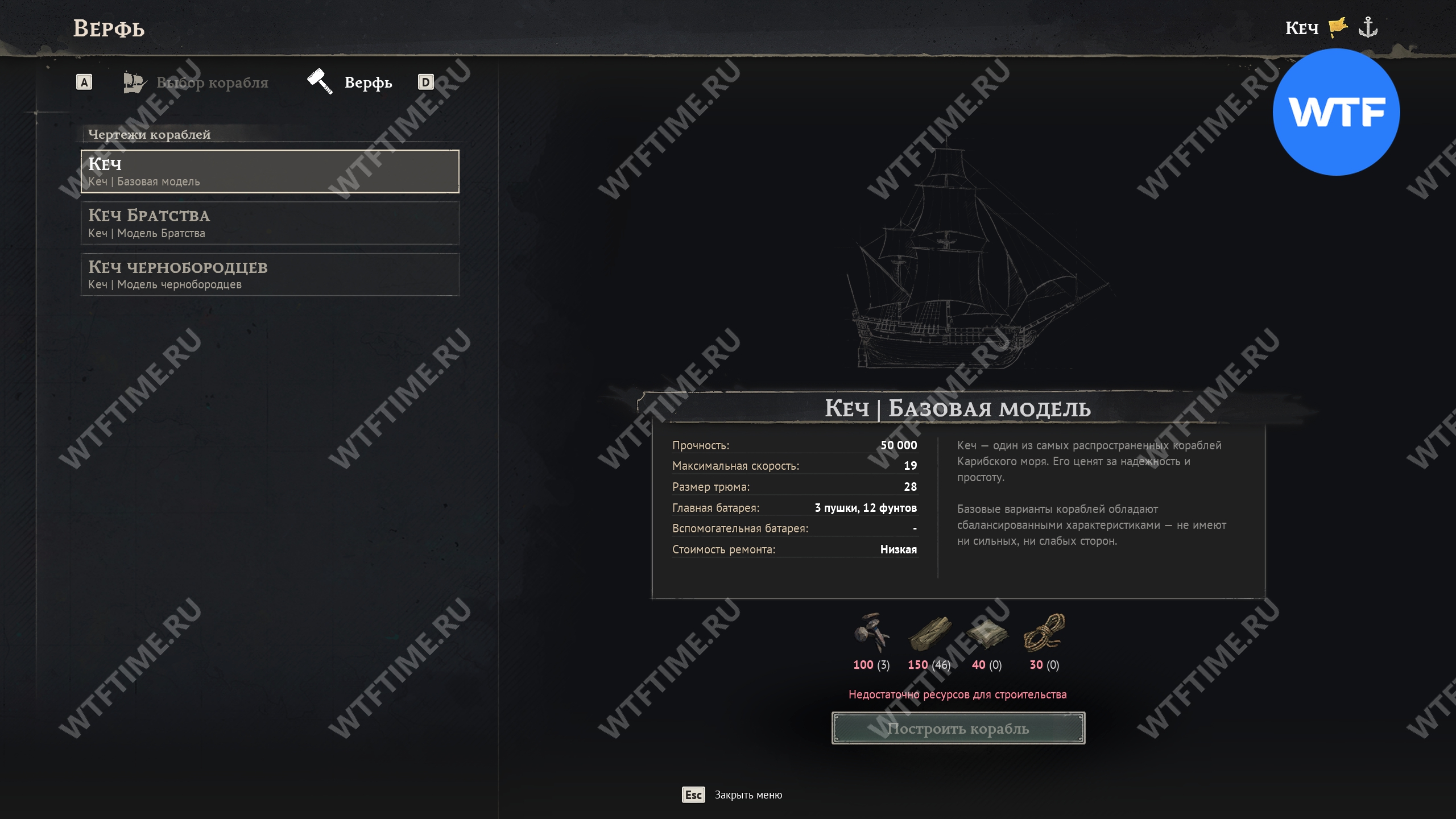 В верфи вы также можете построить другие модели кеча, заплатив при этом достаточно высокую цену в виде ресурсов. Обратите внимание, что изначально вам доступна базовая модель кеча.