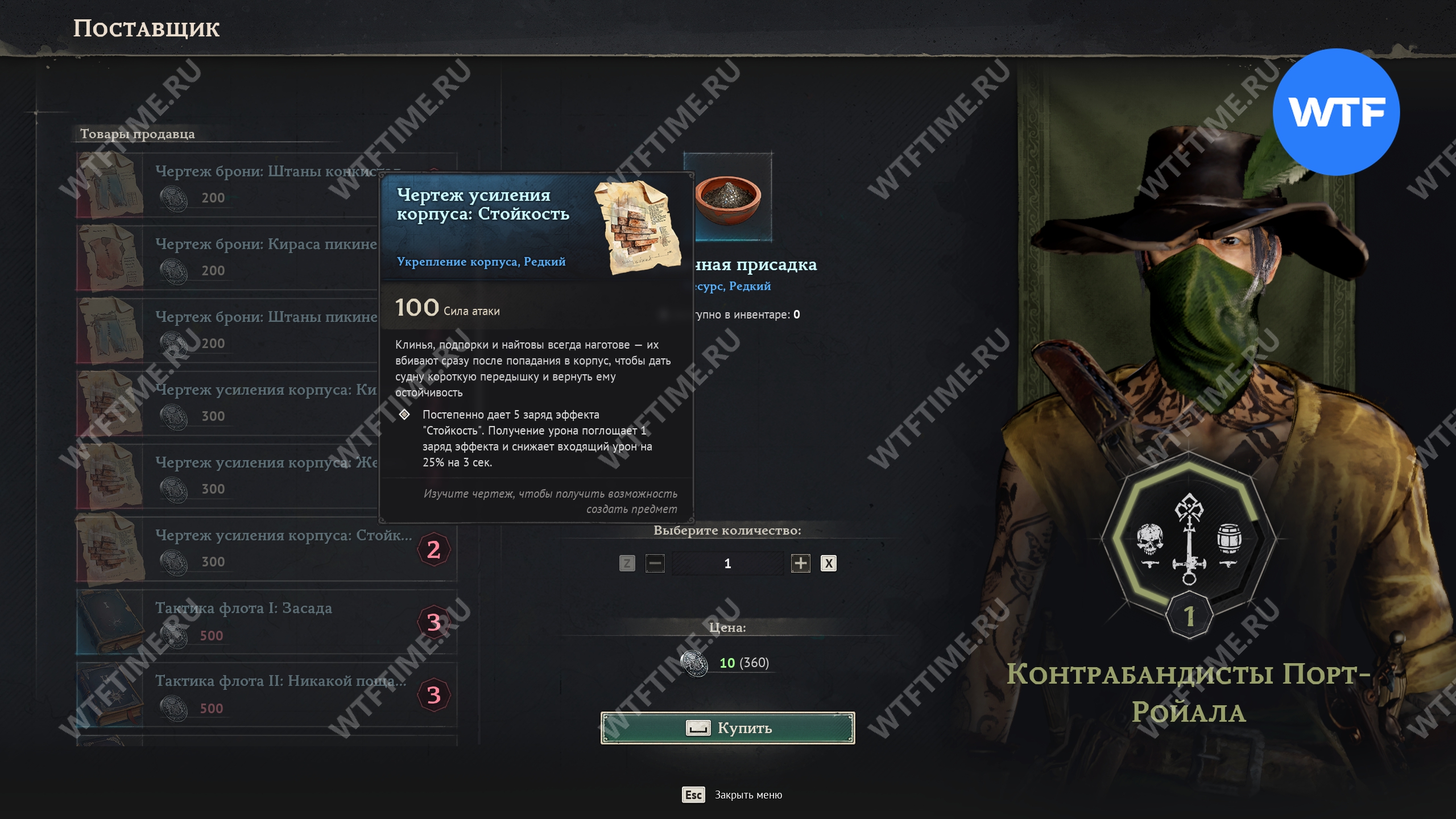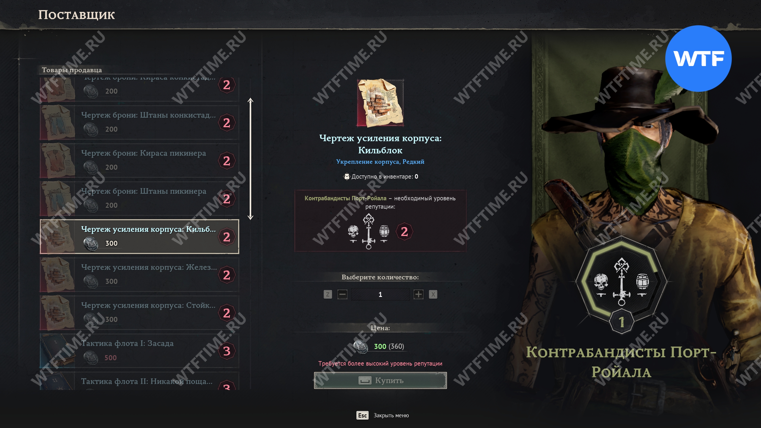 Чертежи усилений корпуса можно купить у поставщика контрабандистов Порт-Ройала. Для этого вам потребуется репутация 2 уровня с этой фракцией, а также 300 пиастров.