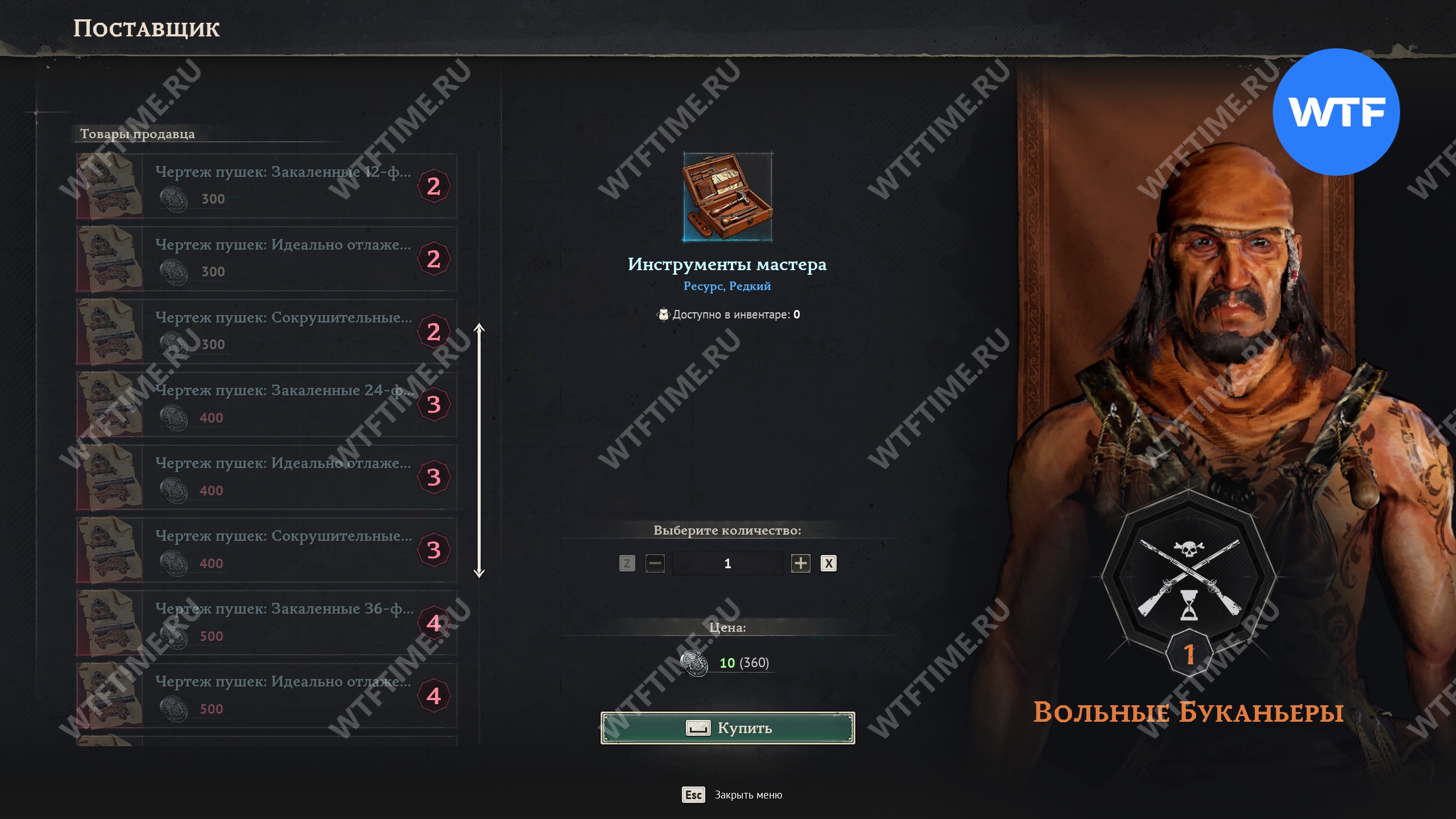 Помимо чертежей кораблей, на Тортуге также можно прикупить и другие чертежи для оснащения вашего корабля. Чертежи пушек есть у поставщика фракции Вольные Буканьеры.
