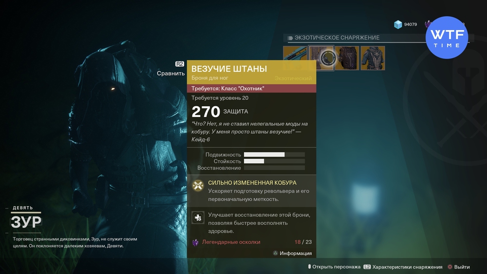 На этой неделе ассортимент Зура не пришелся нам по вкусу. Мы оценили его примерно на троечку. Вам предложат очередное силовое оружие, штаны для Охотников с револьвером и броню подклассов для Титанов и Варлоков. Все цены остались на прежнем уровне.