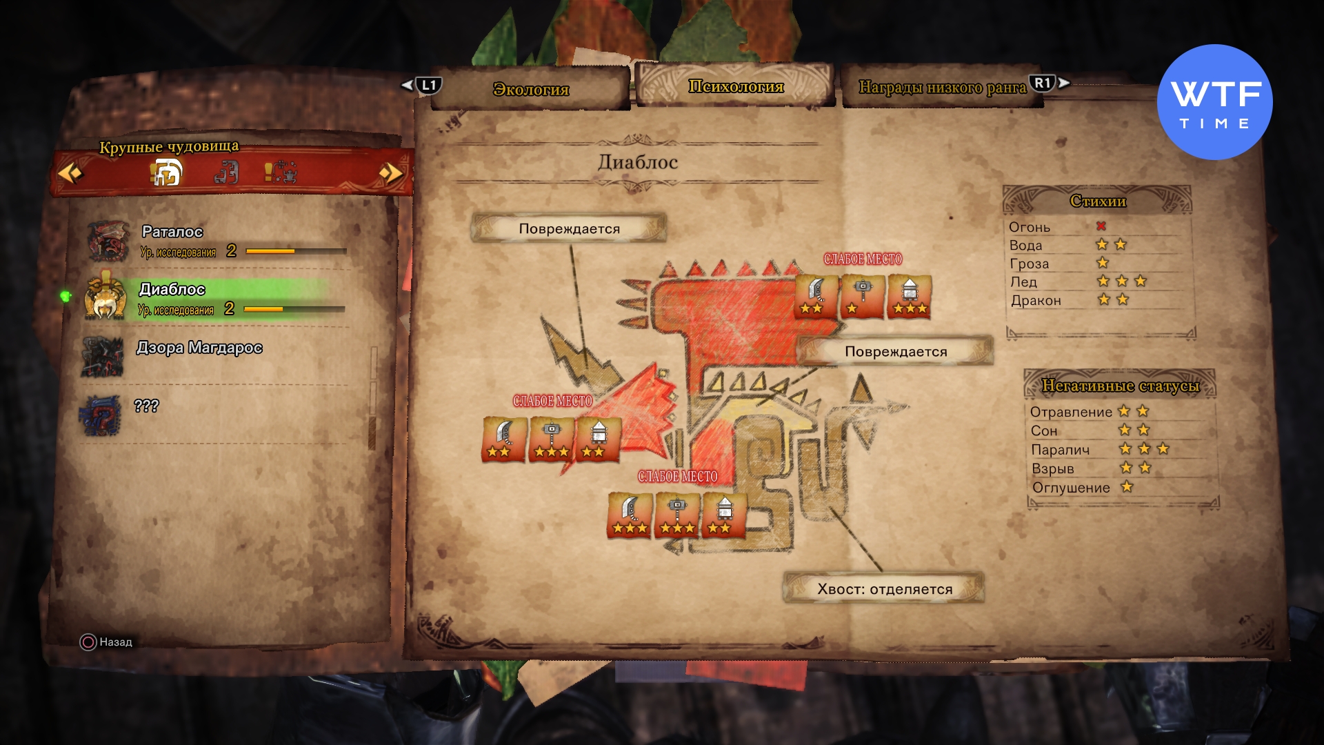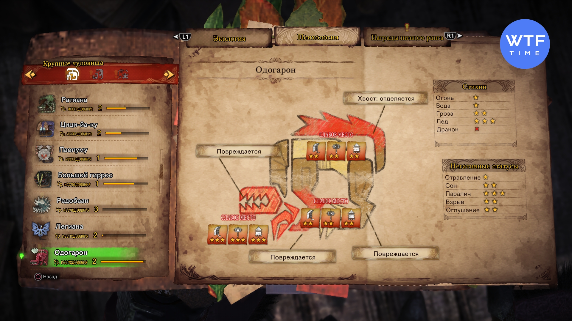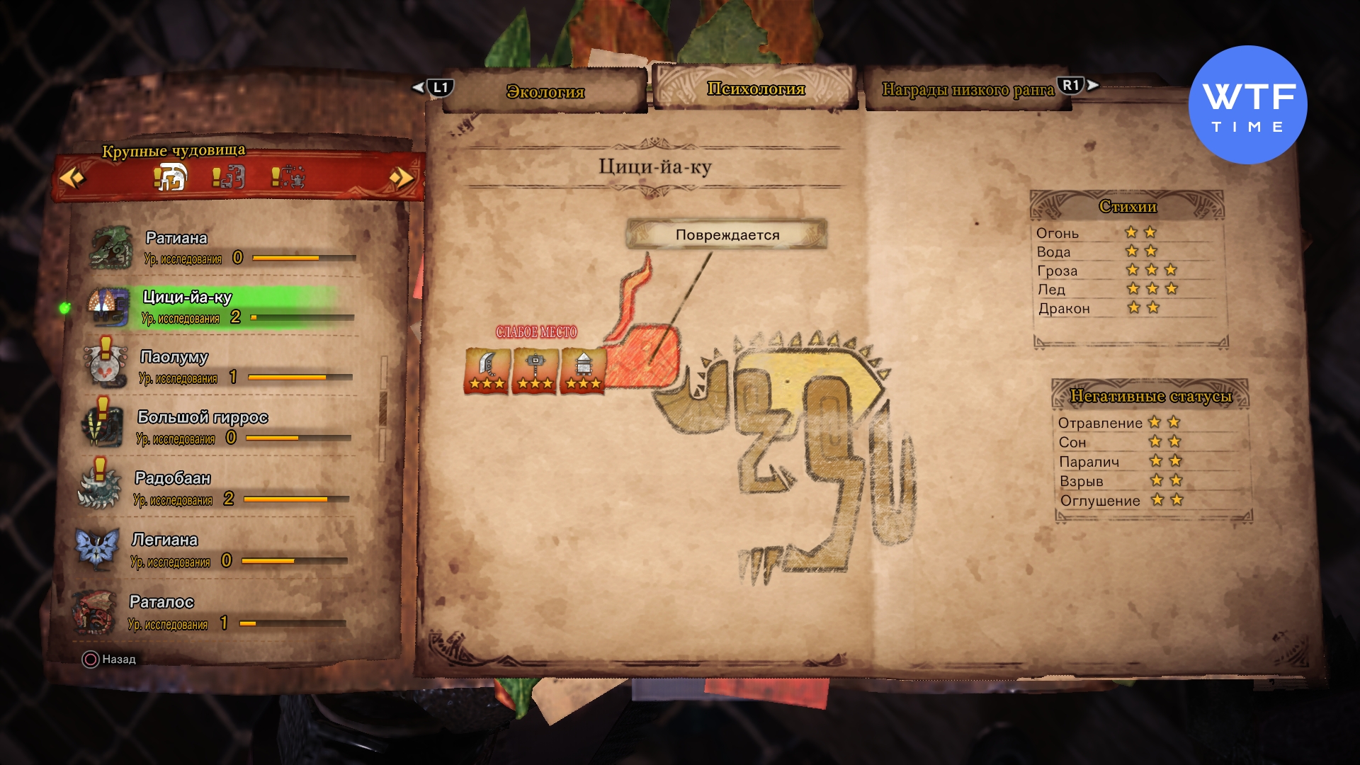 Ратиана уязвима к стихии дракона, поэтому рекомендуем вам выковать оружие с соответствующим эффектом. Еще она хорошо восприимчива к оглушению. Самые слабые места этого монстра - голова и крылья. Хвост можно отрубить, чтобы размах был поменьше. Начать поиски этого чудовища в Дикогорье стоит с 12 сектора, у неё там гнездо. Если там пусто - прогуляйтесь в сторону 3 сектора. В Древнем лесу она гуляет по области.