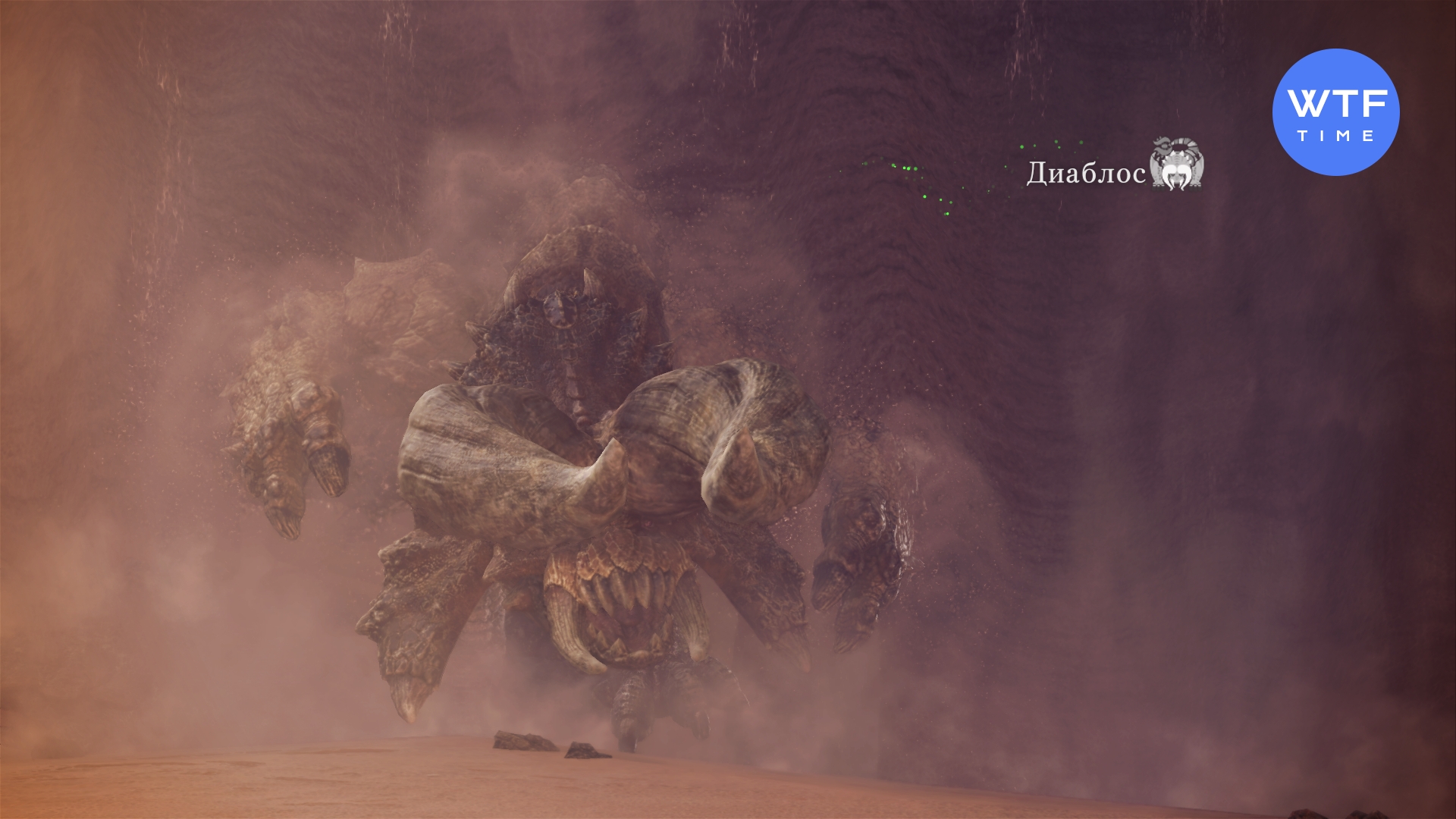 Всегда старайтесь встать так, чтобы между вами и этим монстром было какое-то препятствие. Влетая рогами в камень, он ненадолго оглушает сам себя. Когда чудище начинает зарываться в песок, ни в коем случае не стойте на месте. После того, как Диаблос вынырнет наружу, он будет тупить еще пару секунд. Это хороший момент для нападения.
