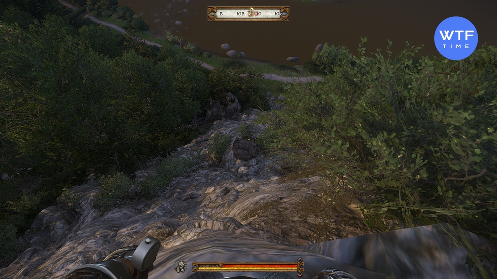 На карте ниже Генри стоит примерно в том месте, откуда мы начинали спуск. Не забудьте сохраниться. Вы будете часто застревать в кустах и текстурах, это нормально. Просто продолжайте спускаться и рано или поздно окажетесь на нужном каменном уступе. Чтобы падать было не так больно, изучите навык Как перышко в ветке с ловкостью.