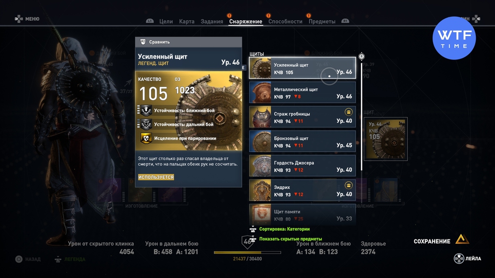 В конце коридора вас будет ждать сундук, а внутри - легендарный предмет. Нам достался усиленный щит. Его уровень будет соответствовать уровню вашего персонажа. В качестве бонуса за использование этого щита, Байек сможет восстанавливать 50% от полученного урона при успешном парировании.