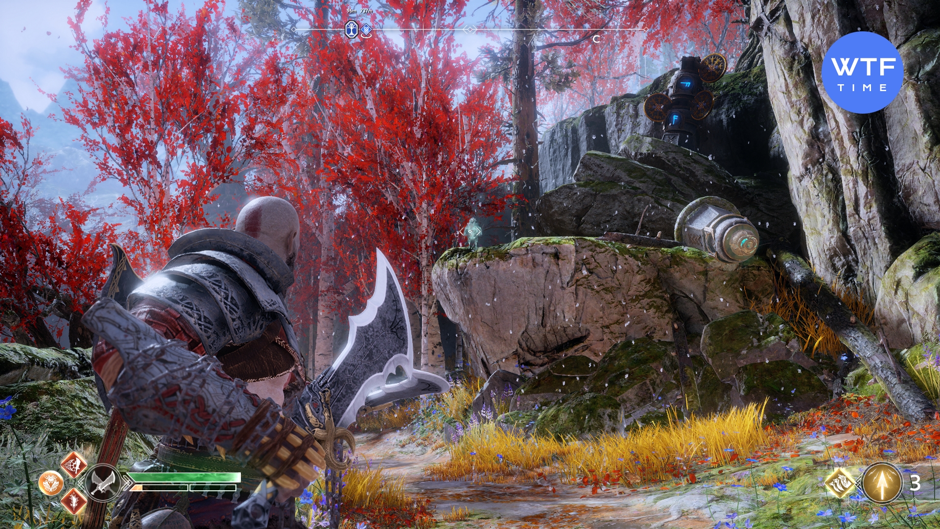 - Эта локация откроется вам в рамках выполнения дополнительного квеста "Слава королю", который вы получите от Синдри и Брока. Первую птицу можно найти вскоре после лавки гнома. Держитесь левой стороны, затем заблокируйте ядовитый туман при помощи топора и дойдите до красного сундука. Ворон будет сидеть на скале прямо за ним.