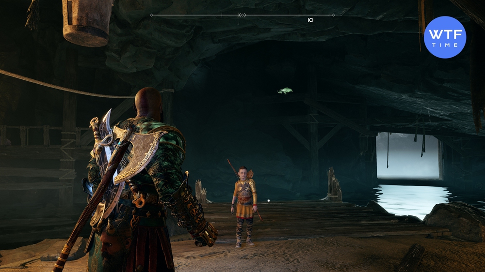 Вам нужно пройти в самую дальнюю части локации, где вас ждет непокорный дух. Мы будем разыскивать его в рамках квеста "Неоконченное дело". Слева от жаровни с зеленым пламенем можно разбить кусок деревянной стены. После этого Атрей заберется внутрь и сбросит вам цепь. Поднимитесь наверх и притормозите у фиолетового сундука. Посмотрите в сторону берега, там вы увидите птицу на скалах.Вороны Одина в Ландсутерских рудниках - 2шт.