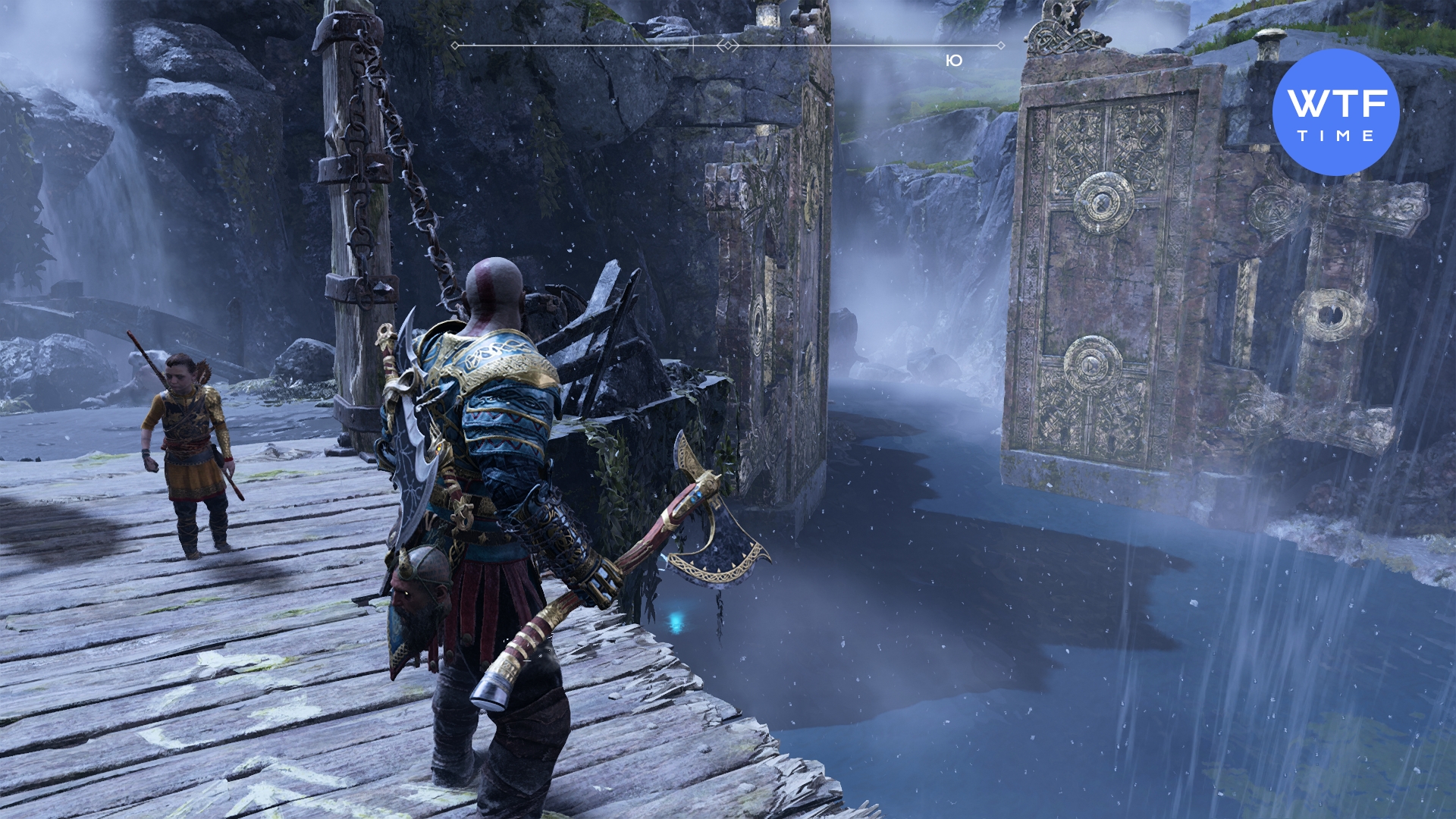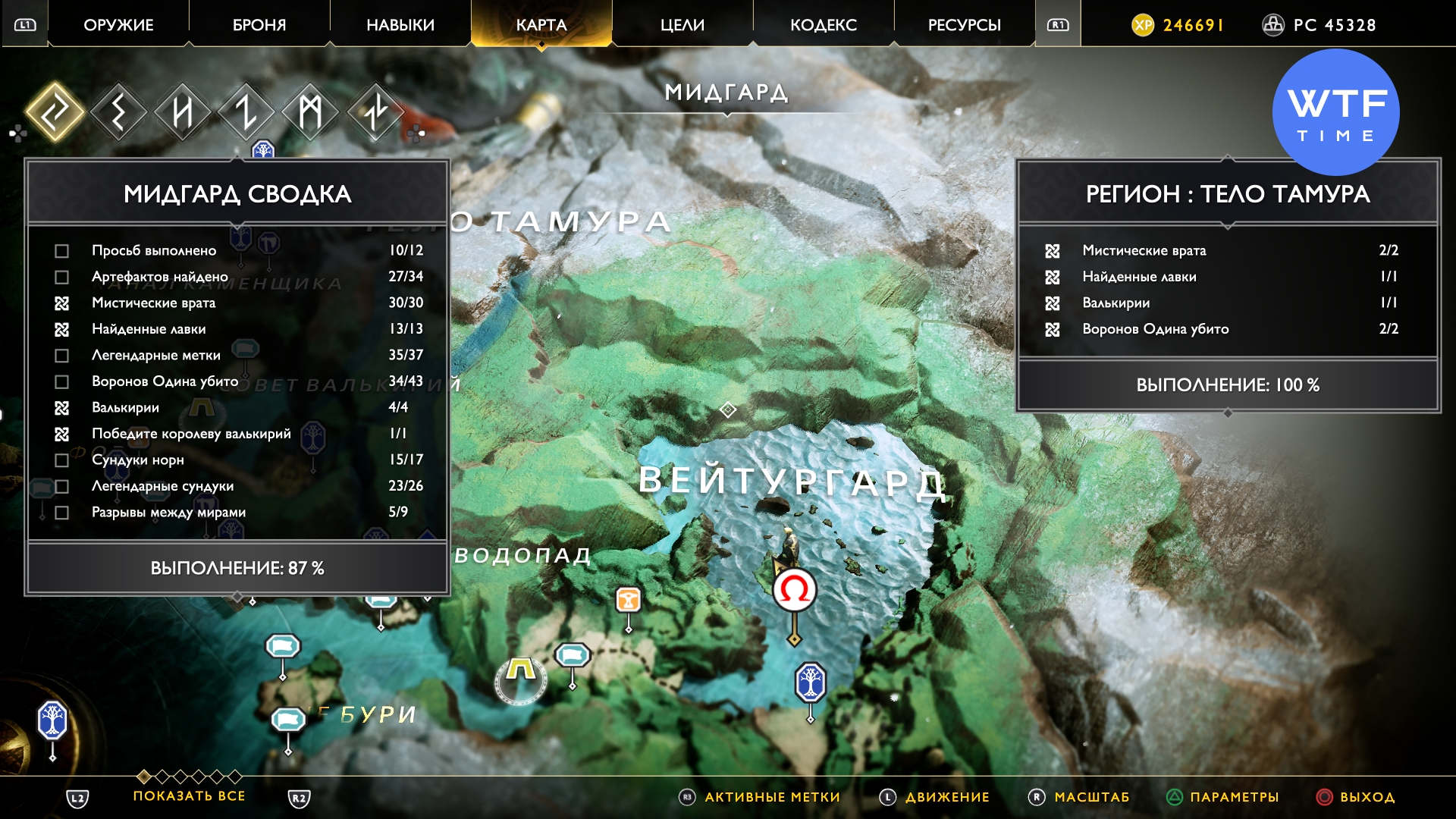 - Чтобы разблокировать доступ в локацию, первым делом высадитесь на причале Каменный водопад к северо-востоку от храма Тюра. Заберитесь наверх и возле неупокоенного духа с квестом увидите колесо, отпирающее ворота. Первого ворона в Вейтургарде вы найдете посреди озера. Он летает вокруг малой статуи Тора. Если статую вы уже успели сломать, птица будет нарезать круги вокруг острова.