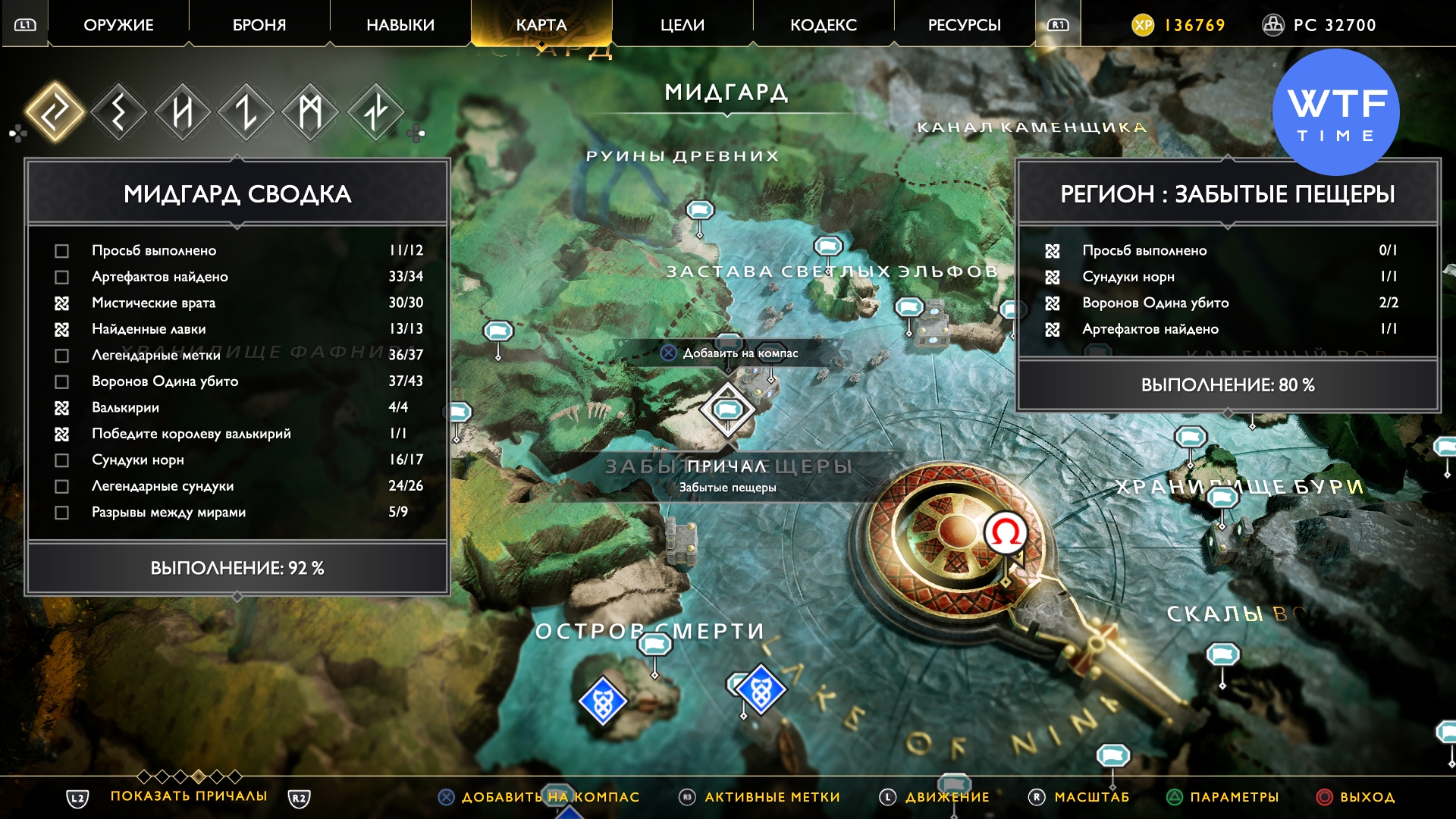 - Четвертый артефакт на Озере Девяти вы найдете на вершина башни Альфхейма к северо-востоку от храма Тюра. Если вы там уже побывали, то воспользуйтесь быстрым переходом.