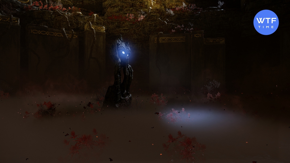 Ядовитые туманы Нифльхейма не отпускают разум некоторых фанатов. Они продолжают бродить в глубинах лабиринта, изучая синие рисунки, загорающиеся на стенах при приближении. Особенно подозрительной им кажется статуя гаргульи со скриншота ниже. Она единственная в Нифльхейме образует заметный круг света на земле. Пока ни к каким конкретным результатам эти исследования не приводят. Следить за темой можно по этой ссылке.