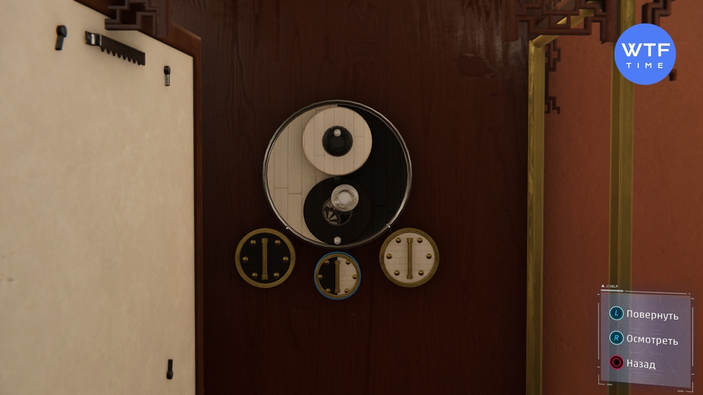 Осталось всего ничего - вращайте центральную рукоятку, чтобы маленькие круги оказались строго по центру больших. После этого дверь откроется.