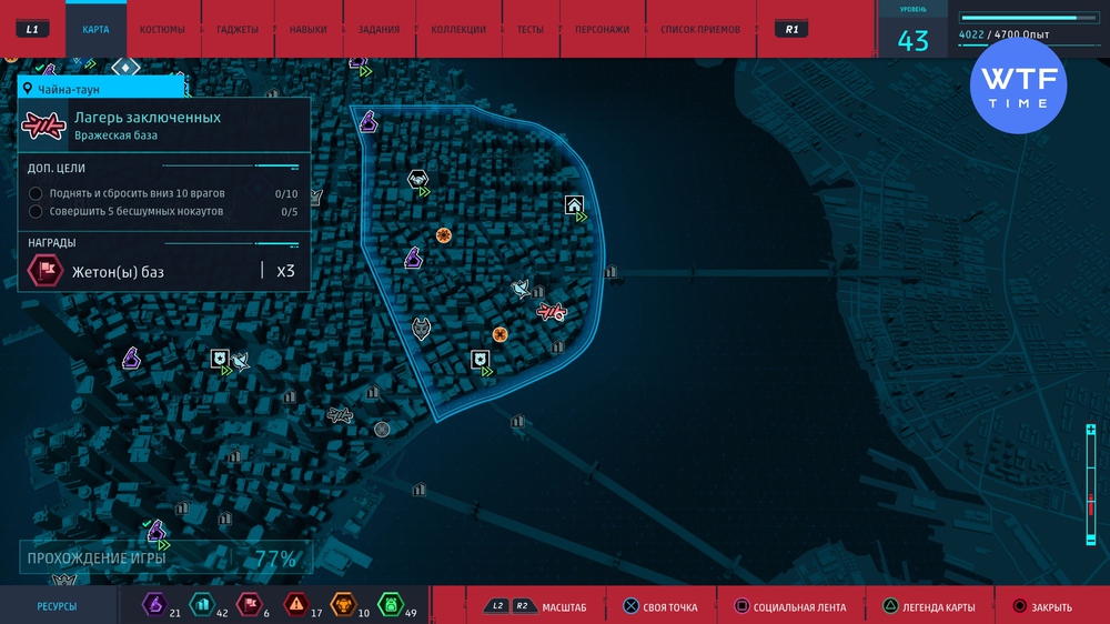 С каждой базы можно выбить максимум три жетона. Как и с преступлениями, количество жетонов зависит от выполнения дополнительных целей. Старайтесь выполните все за один раз, чтобы не тратить время на перепрохождение. Эти жетоны очень ценные, так как требуются для многих костюмов и гаджетов.
