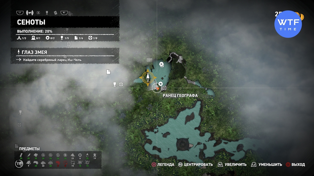 - В этом регионе вас ждет всего один ранец. Переместитесь в лагерь "Вид на Сенот", спрыгните вниз в озеро и доберитесь до берега в его южной части.