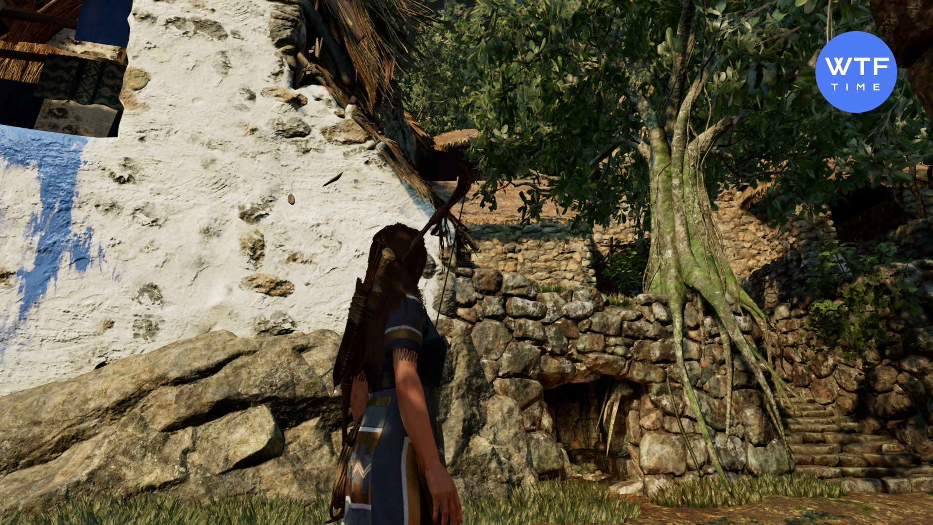 - Следующий ранец можно найти внутри затопленной пещеры. Вход расположен рядом с лагерем "Рынок Пайтити". Ищите большое дерево со второго скриншота и поднимайтесь по лестнице справа от него. Дальше пройдите сквозь здание и окажетесь у цели.