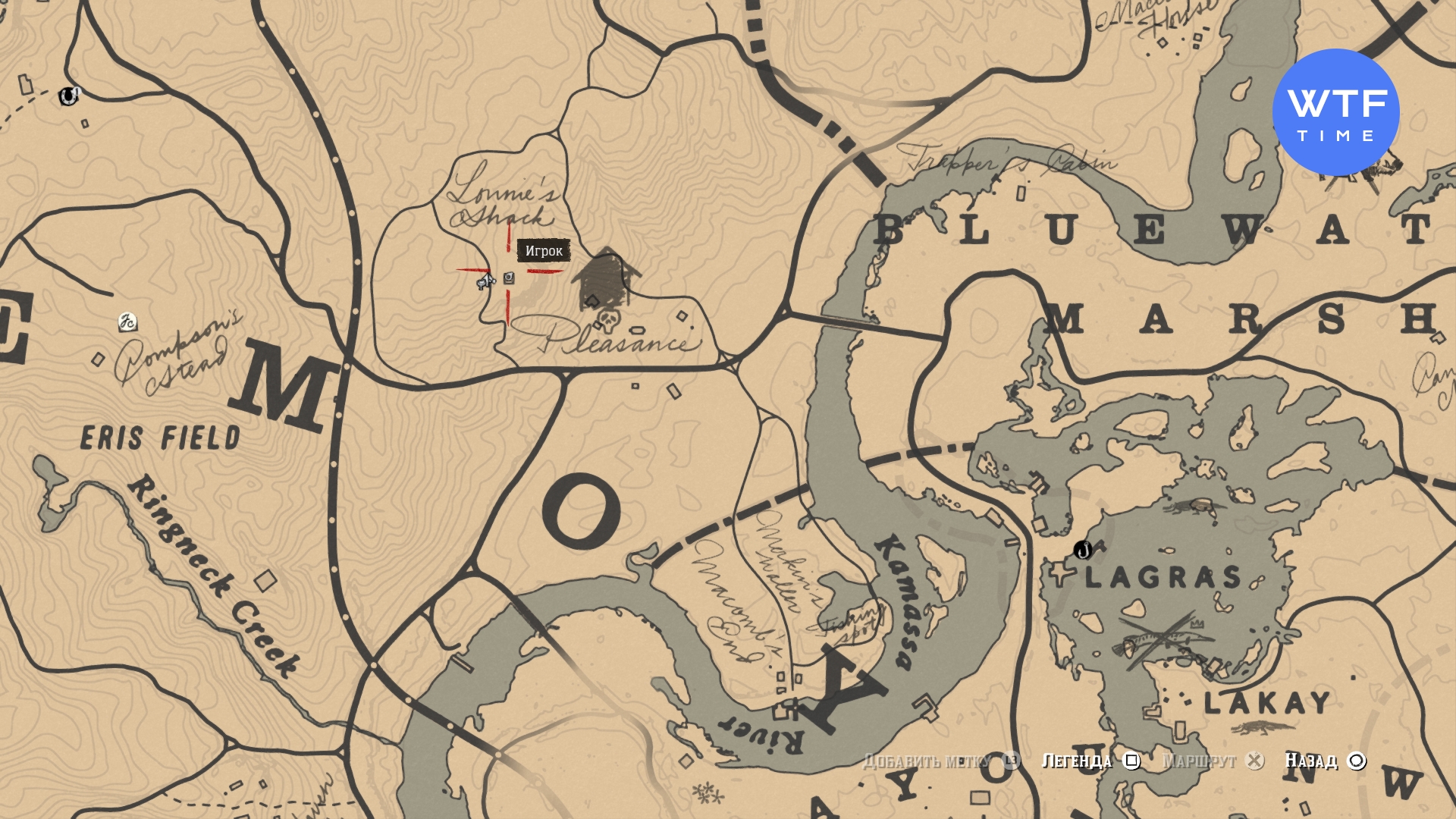 К северо-западу от Лаграса есть местечко с названием Pleasanсe. Карточка лежит на деревянном ящике возле боковой стенки амбара. Его легко пропустить из-за высокой травы.