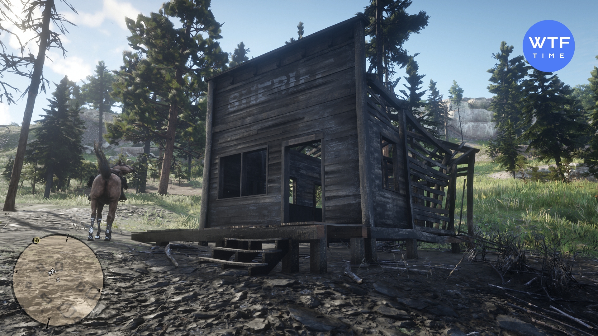 Еще один золотой слиток можно найти буквально в паре шагов от нашего первого базового лагеря "Нагорье Подкова". Вам нужно местечко с названием Limpony. В здании с надписью Sheriff есть стол, а под ним — сейф со слитком.