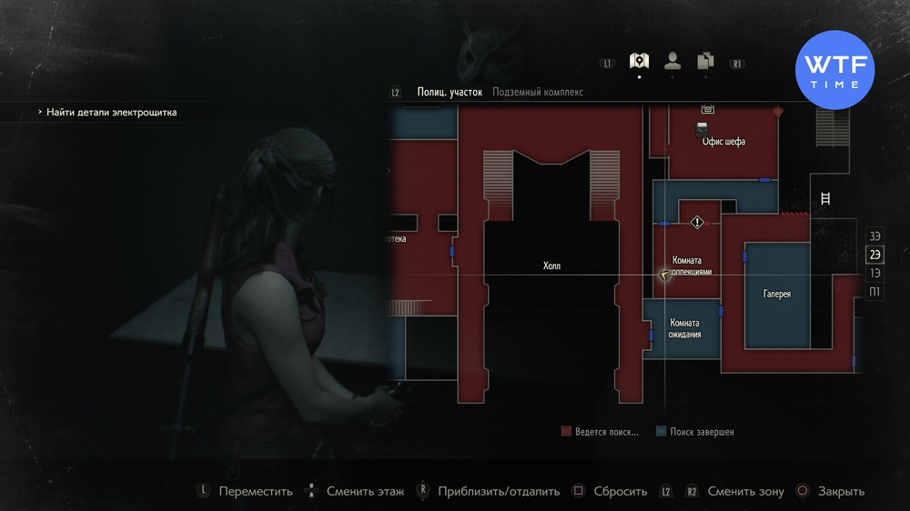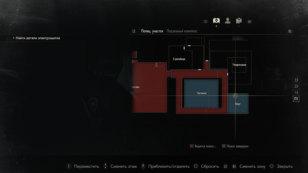 В полицейском участке есть два предохранительных щитка: один отпирает дверь на 1 этаже между Холлом и восточным крылом, второй - дверь в Комнату смотрителя. Чтобы починить такой щиток, вам понадобится электрическая деталь. Первую можно найти внутри Восточного офиса, для входа внутрь нужен болторез. Вторую может найти только Леон, она лежит в Комнате отдыха на первом этаже.