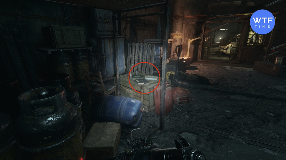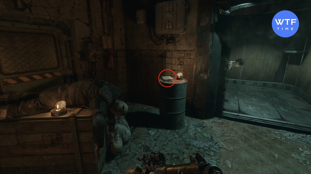 - Дневник №5 - перед входом в следующий лифт не забудьте забрать "Дневник офицера 2", лежащий на бочке рядом.
