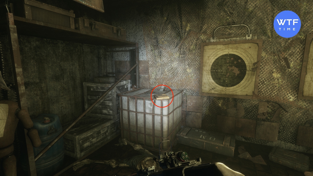 - Дневник №2 - идите вперед, пока не пройдете через кухню и морозильную камеру. Сразу после выхода из неё есть небольшой лаз. Через него можно пробраться на стрельбище с двумя мишенями. "Страница дневника 2" лежит на полупустой цистерне слева. Если коллекционка не появляется, включите в помещении свет. Выключатель находится прямо перед лазом.
