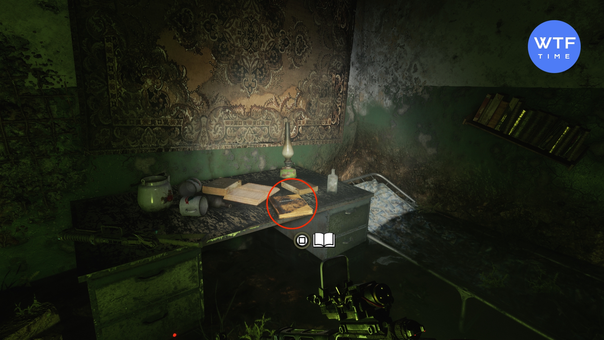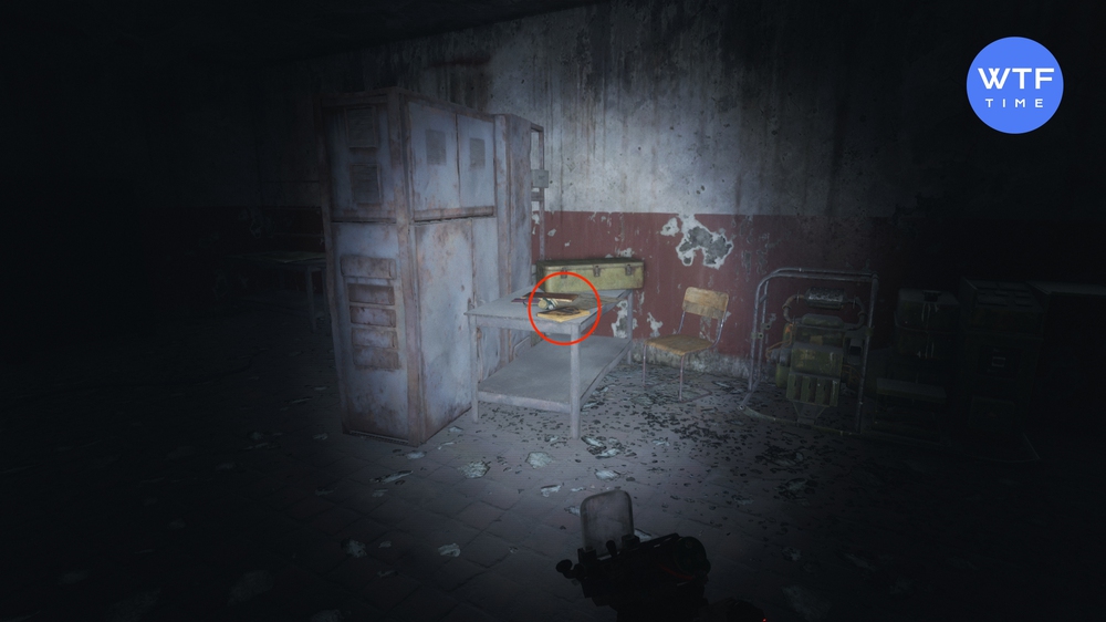 - Дневник №2 - дальше вы встретитесь с упырями, пройдете через гермоворота и перейдете с зеленой ветки метро на красную. Это будет понятно по изменившемуся цвету стен. В первой из красных комнат на столе нужно забрать "Потрепанный отчет".