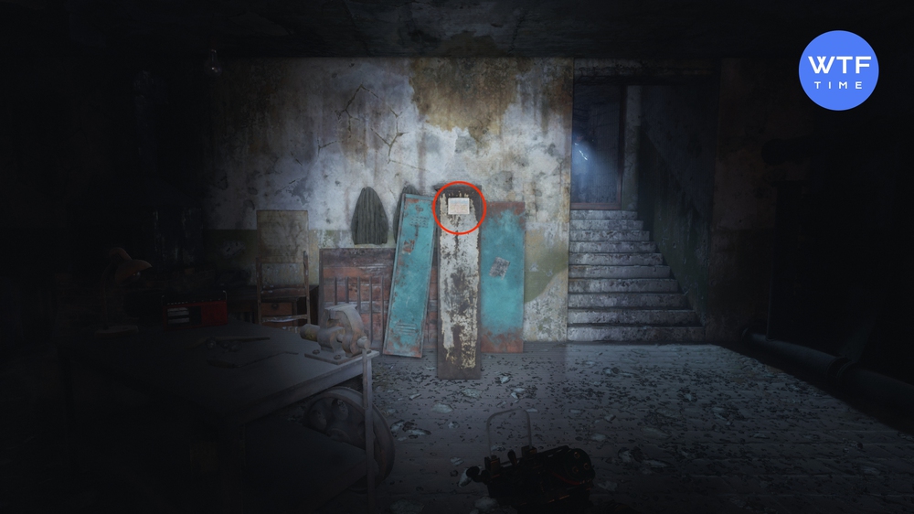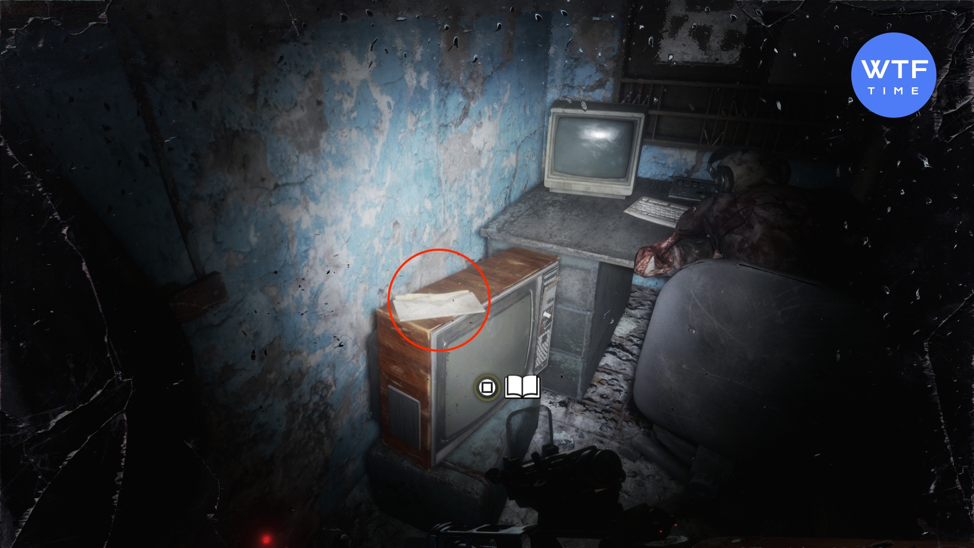 - Дневник №6 - после того, как вам впервые примерещиться Анна, поднимитесь вверх по эскалаторам. Держитесь левее, пока не дойдете до синей двери со скриншота ниже. Внутри на телевизоре лежит "Потемневшая записка".