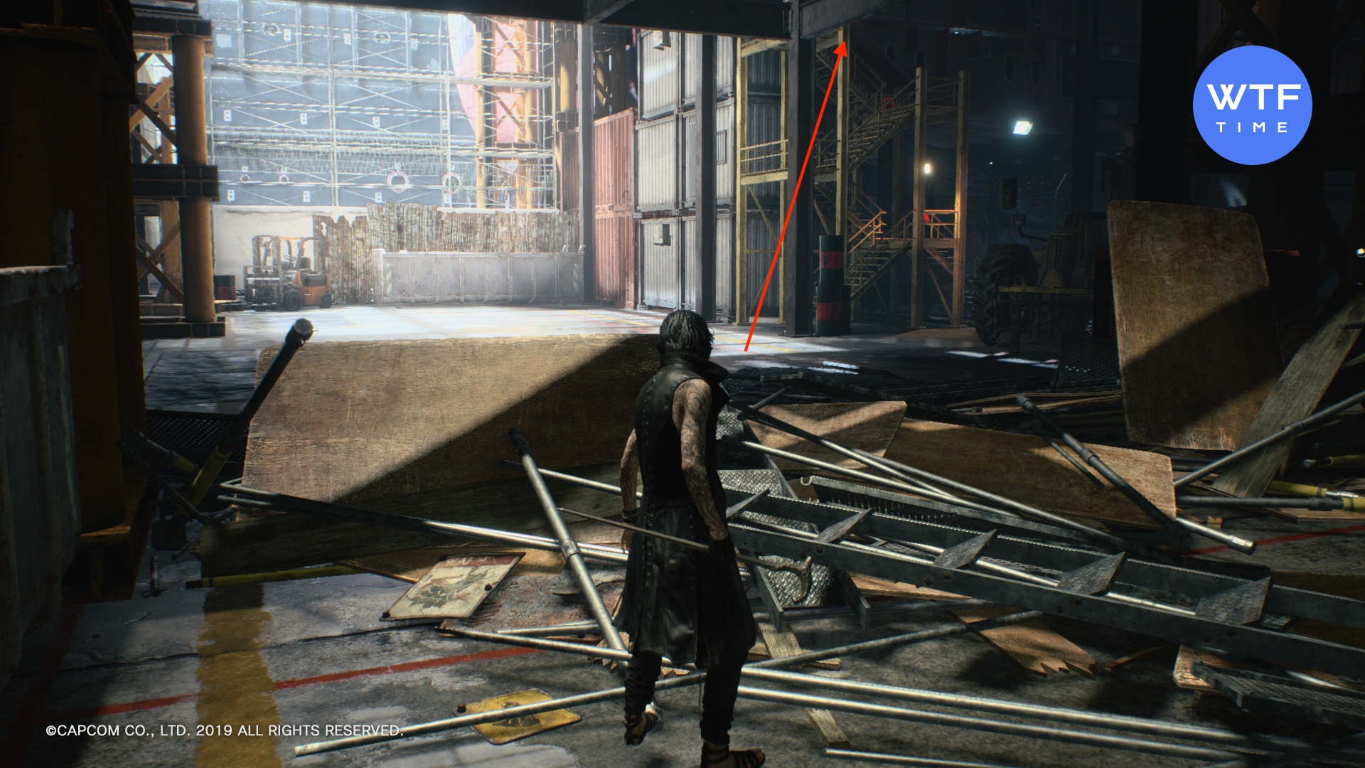 Миссия 05. Дьявольский меч спарда. Двигайтесь по уровню, пока не доберетесь до склада. Сразитесь с первой группой врагов и спрыгните со стеллажей вниз. На стене слева от вас вы увидите кусочек изображения от секретной миссии. Призовите в этом месте Кошмара, чтобы он разломал одну из стен. Теперь вы сможете подняться по лестнице на самый верх и запустить секретную миссию. Чтобы победить, вам нужно убить врагов, не получая урона. На обычной сложности для V и его демонов это не составит труда.