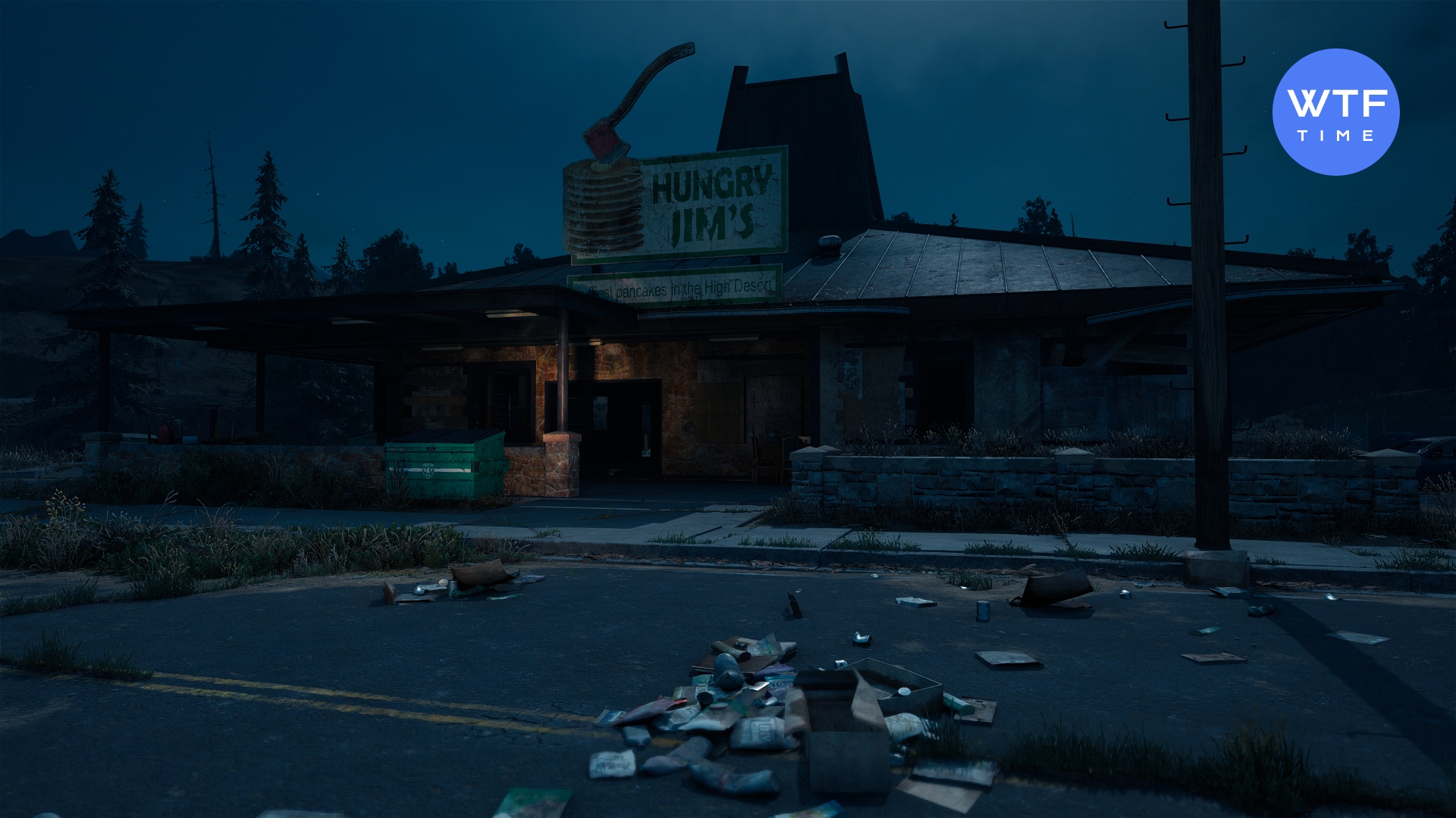 В северо-восточной части региона есть небольшой городок с названием "Мэрион-Форкс". Прямо напротив заправки стоит закусочная Хангри-Джимз, меню лежит на одном из столиков внутри.