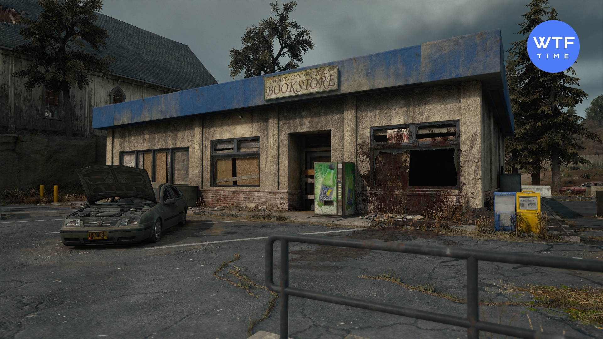 Все тот же городок, только теперь нам нужен местный книжный магазин. Вы будете буквально проходить мимо во время сюжетных поисков Лизы и зачистки местности от упокоителей. Залезьте внутрь через выбитое окно и заберите наклейки со стола в небольшом кабинете.