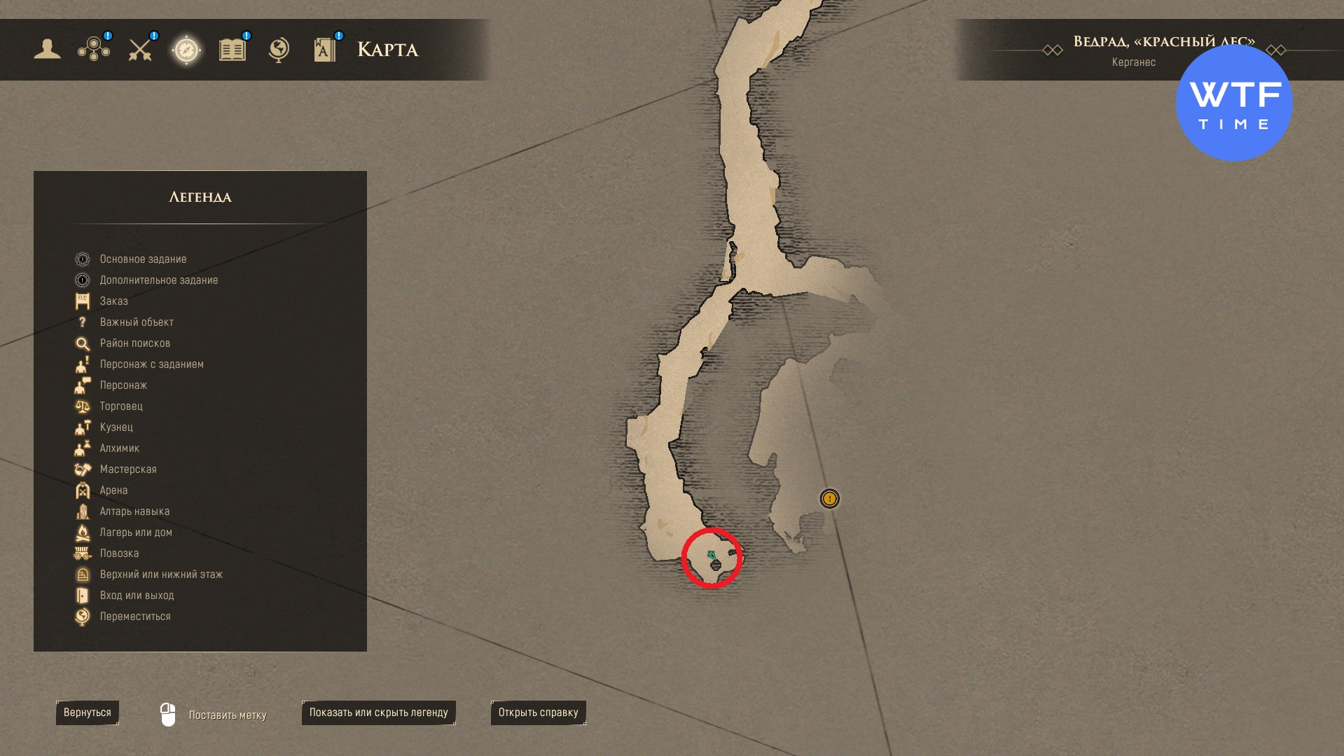 Перчатки и штаны вы найдете внутри сундука в пещере Керганес. Проход в неё находится в северо-западной части региона Ведрад, "Красный лес". Мы отправимся сюда в рамках дополнительного задания Альфры "Мудрость островитян".
