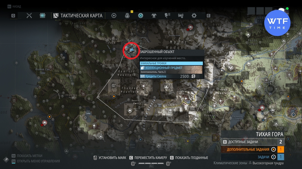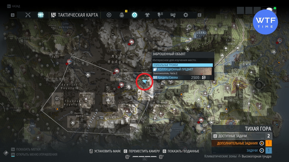 - Где сокровище: Пик загадки (Mystery Peak) находится в южной части региона "Гора Ходжсон". Вам нужен заброшенный объект, расположенный в горах на северо-востоке региона "Тихая гора".