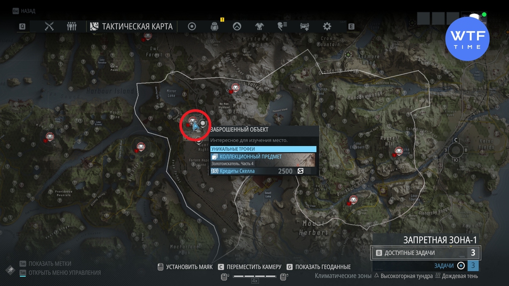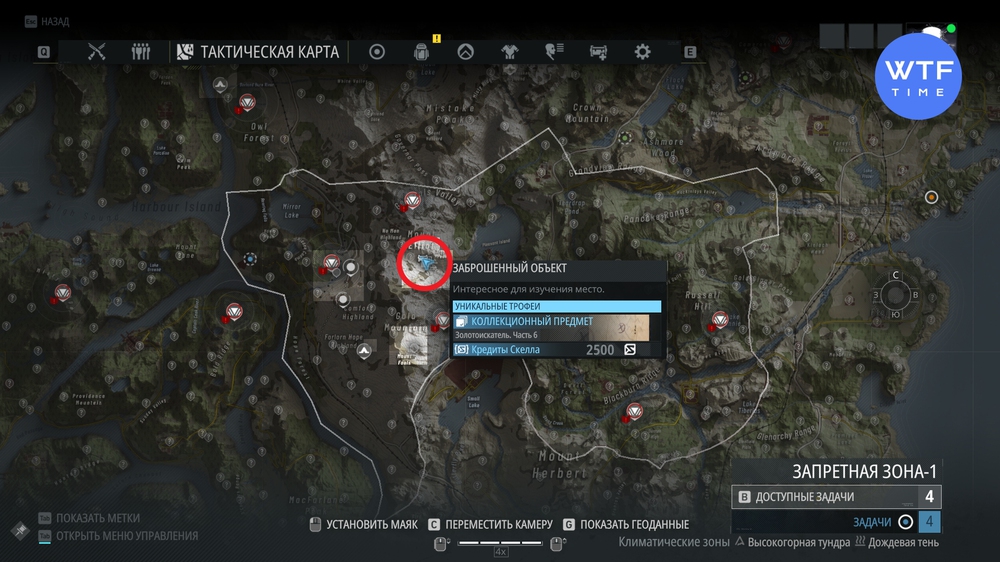 - Где сокровище: Глупая гора (Mount Fools) находится в юго-западной части региона "Запретная зона-1". Вам нужен заброшенный объект, расположенный прямо под надписью Gold Mountain на карте.