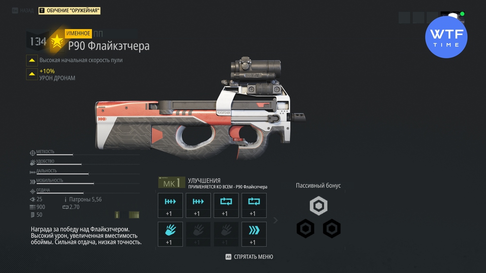 - Описание: высочайшая скорострельность в игре и низкая отдача, но снижены точность и огневая мощь.
