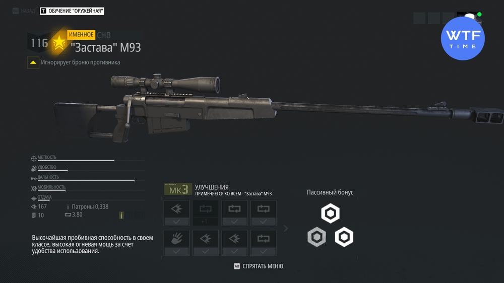 - Описание: высочайшая пробивная способность в своем классе, высокая огневая мощь за счет удобства использования. Игнорирует броню противника.