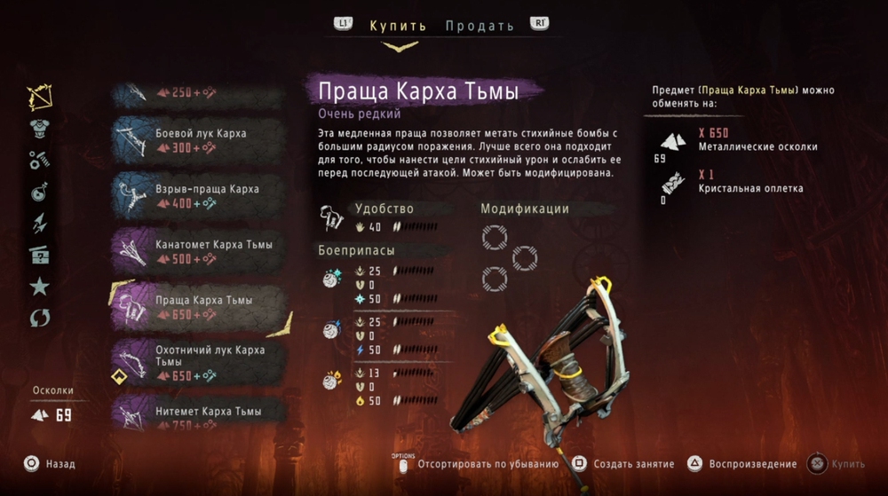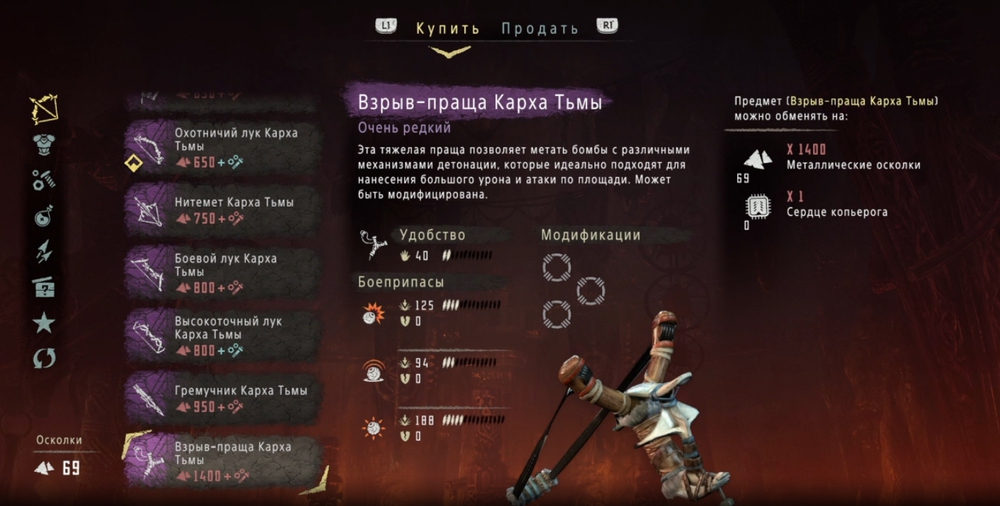 Стоимость: 650 металлических осколков и 1 сердце рыскаря.
