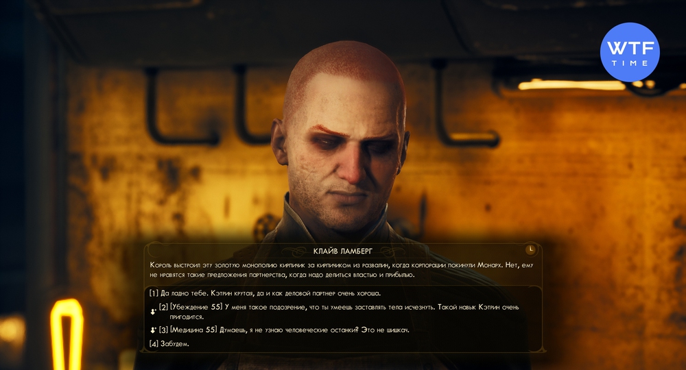 - Убедить Кэтрин и Клайва сотрудничать - с точки зрения опыта и лута это самый предпочтительный вариант, однако вам потребуются для этого достаточно высокие навыки.