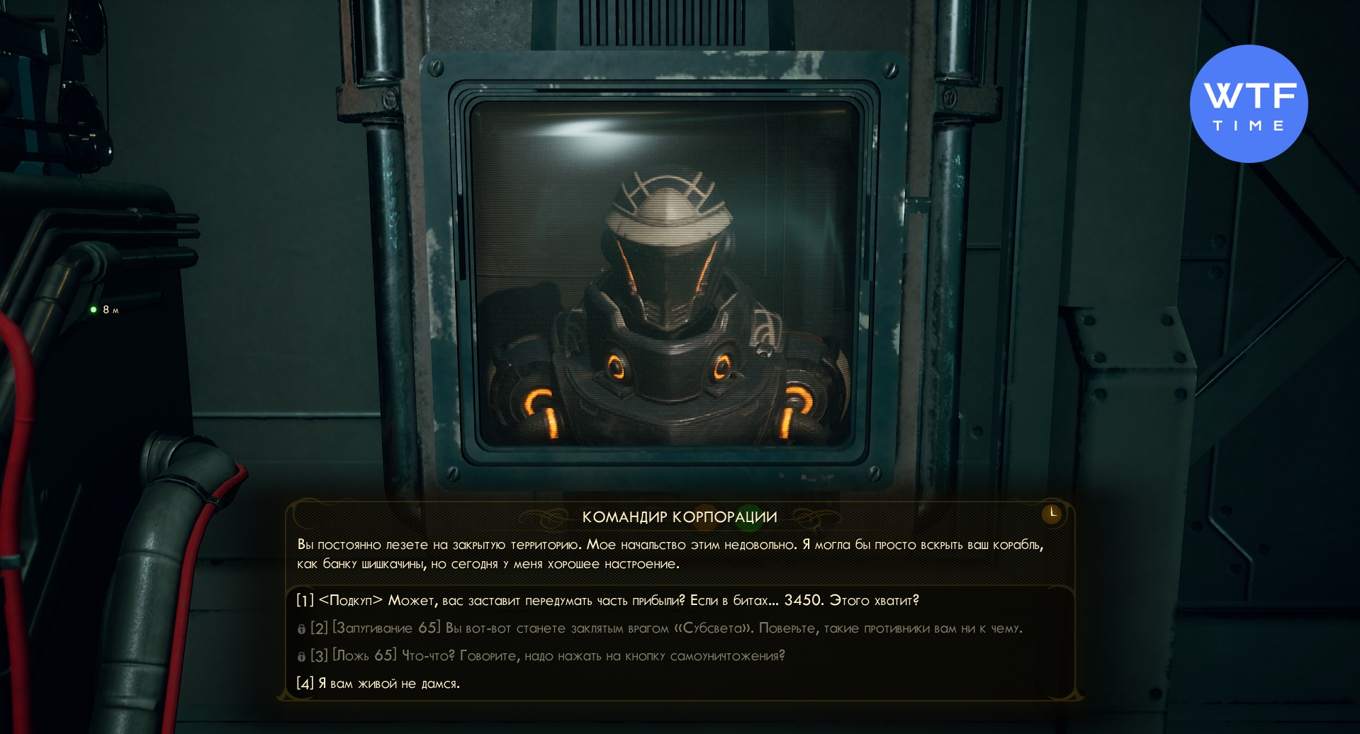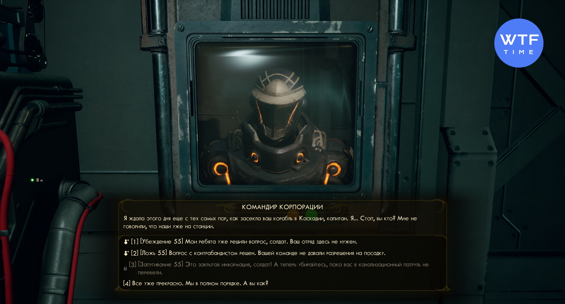 Теперь идите за квестовой меткой и восстановите энергоснабжение станции. После того, как вы закроете терминал, с вами на связь выйдет АДА. Чтобы договориться с командиром корпорации, вам понадобится высокий навык убеждения, лжи или запугивания. Если проверку навыков вы не пройдете - появится вариант с подкупом.