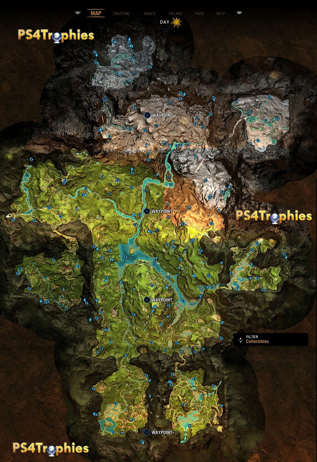 Благодаря исследователям с ресурсов PS4Trophies и GamePur у нас есть подробная карта, с помощью которой найти все коллекционные предметы Far Cry: Primal будет достаточно просто.