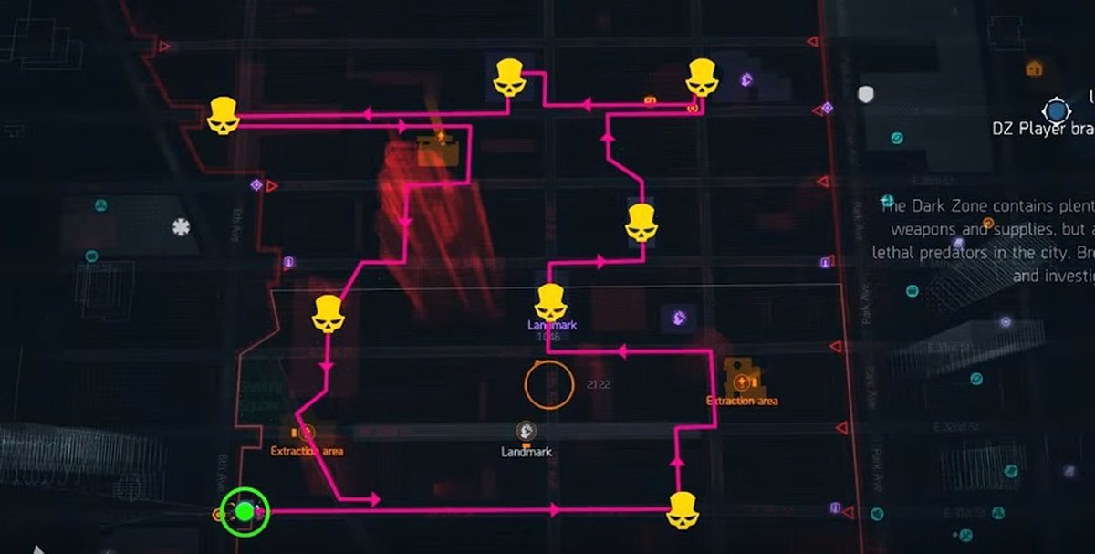 Больше всего в Темной Зоне The Division нам интересны две вещи: повышение ранга и мешок кредитов Phoenix, за которые можно купить высокоуровневое снаряжение. Так вот маршрут, показанный ниже, позволит вам убить двух зайцев одним ударом.