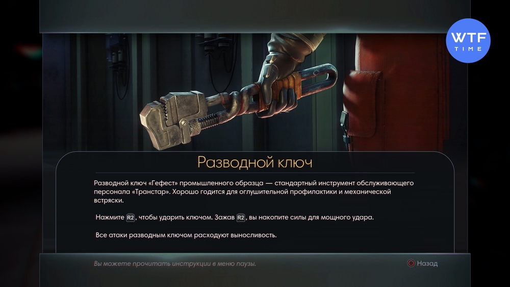 Со своими способностями более-менее разобрались, давайте посмотрим чем будем отмахиваться от врагов. Первое что дадут нам в руки - это разводной ключ. Поначалу это основное оружие Морган. Хорошая штука, которая поможет настучать тифонам в ближнем бою. Тут нам хочется посоветовать вам почаще зажимать кнопку атаки. Так замах станет больше, и выносливость будет расходоваться меньше. Да-да, мы тоже можем уставать. Остаться без сил среди кучи мимиков - совсем неприятно, можете нам поверить.