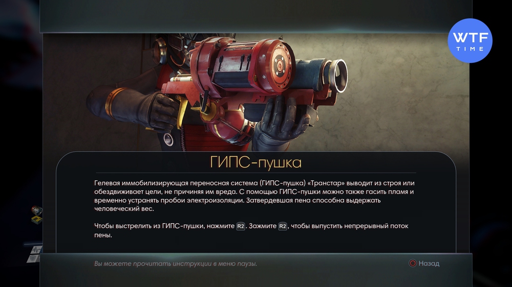 Следующие важное оружие мы тоже получим по сюжету. ГИПС-пушка позволяет замораживать врагов на месте, не нанося им при этом урона. А еще она может быть полезна в бытовых ситуациях: например, погасить пламя или забраться повыше по застывшей пене.