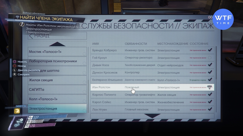 Самый простой способ найти пропавшего члена экипажа - обратиться к терминалу безопасности. В каждом отделе есть как минимум один такой. В него загружен список сотрудников с разбивкой по отделам. Если напротив сотрудника стоит галочка, как на скрине ниже, значит его вы уже нашли. Выбор любого имени из списка запускает миниквест по поиску и ставит отметку на вашей карте.