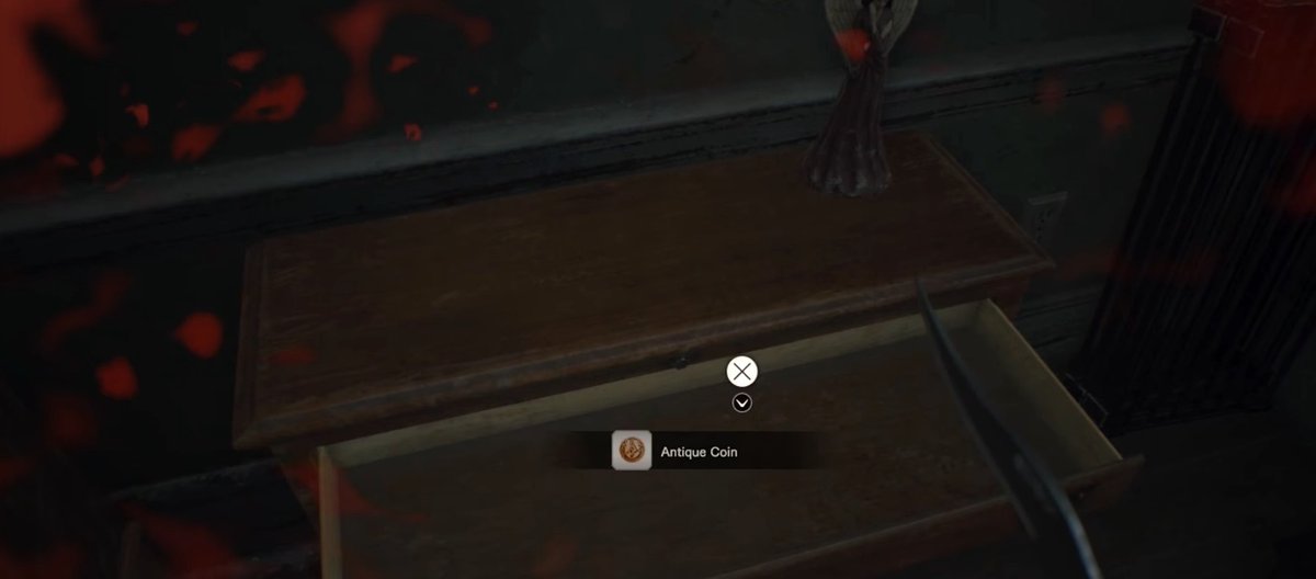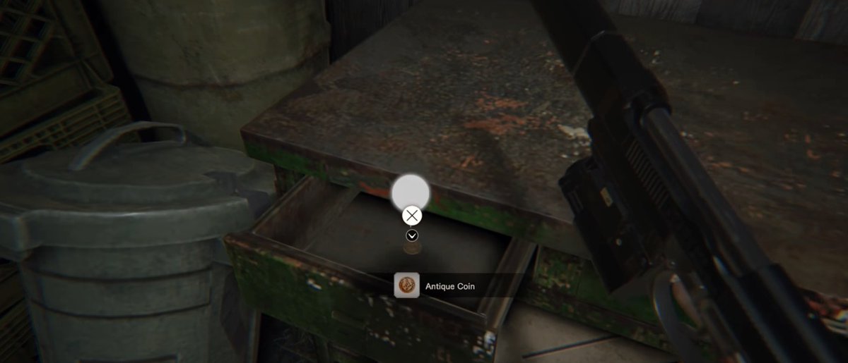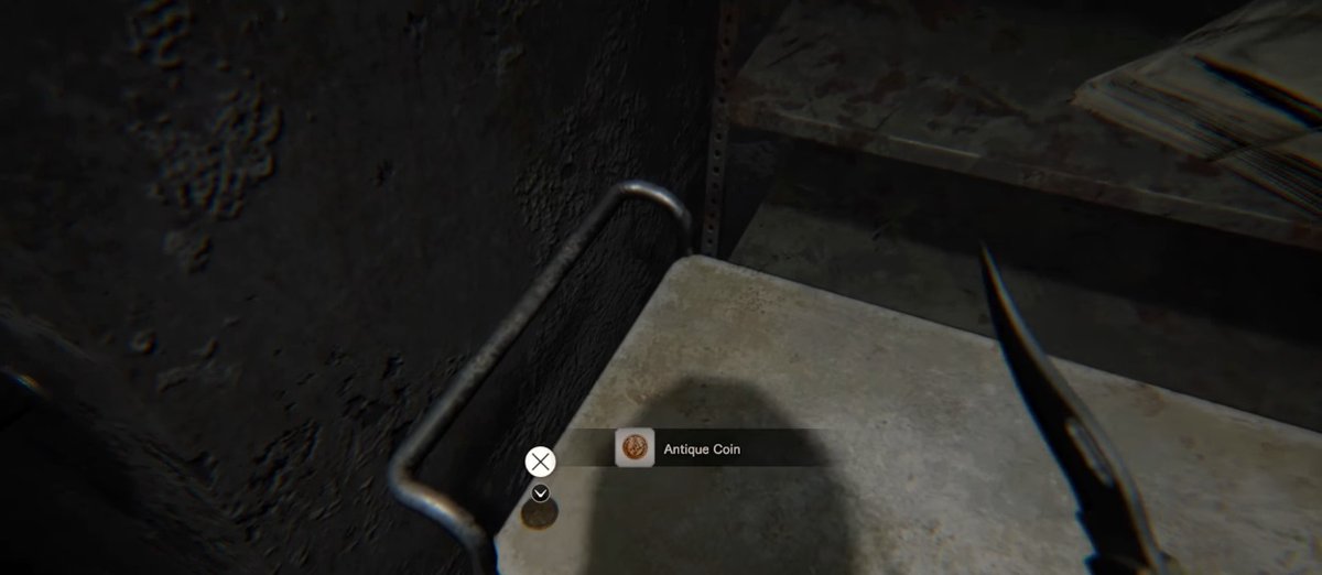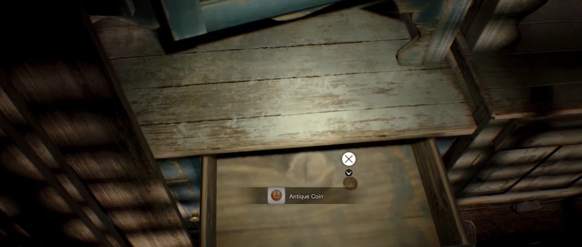 Первая антикварная монета: находится в самом начале игры, на первом этаже гостевого домика. Пройдите на кухню, откройте ящик с помощью отмычки и завершите прохождение за Клэнси. Затем, уже в роли Итана, вернитесь на кухню и заберите монету из открытого ящика.