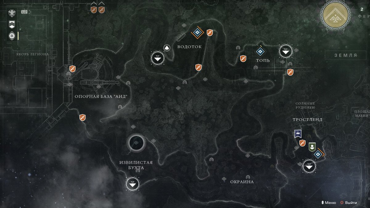 Поиск Сундуков Региона: в Destiny 2 некоторые клады просто лежат и ждут своего нового обладателя - нужно лишь дойти и подобрать их. На карте Сундуки обозначаются пустым белым крестом с точкой в центре.