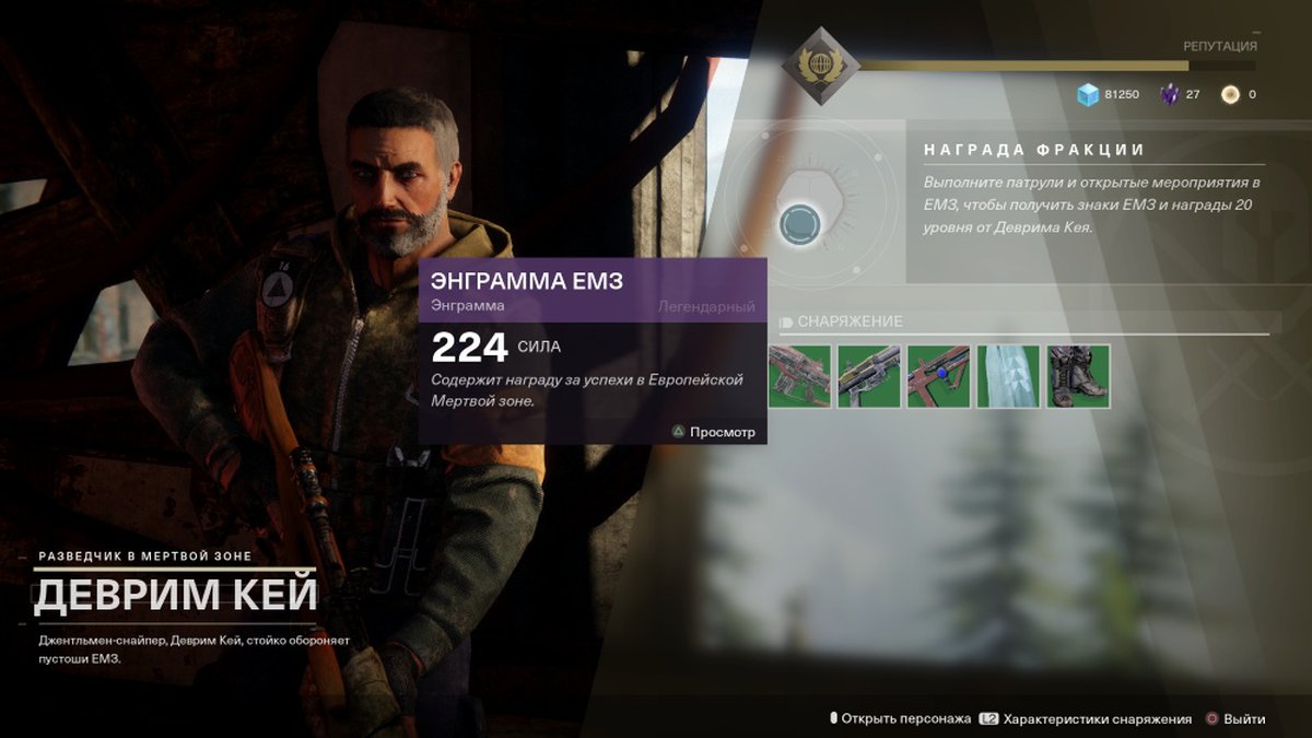 В Destiny 2 есть гарантированный способ получения энграмм - повышение репутации с главными NPC региона. Например, во время отстрела врагов и прохождения заданий в Европейской Мертвой Зоне вы получаете Знаки ЕМЗ, с помощью которых прокачивается репутация с Девримом Кеем.