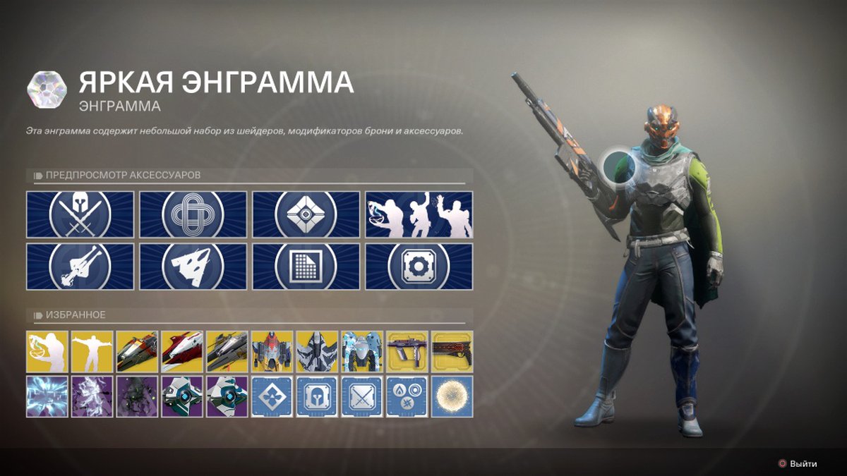 В ярких энграммах могут время от времени попадаться дополнительные оболочки для вашего Призрака. Стоит обращать внимание на характеристики новых оболочек: они не только меняют расцветку Призрака, но и способны снабжать его дополнительными возможностями.