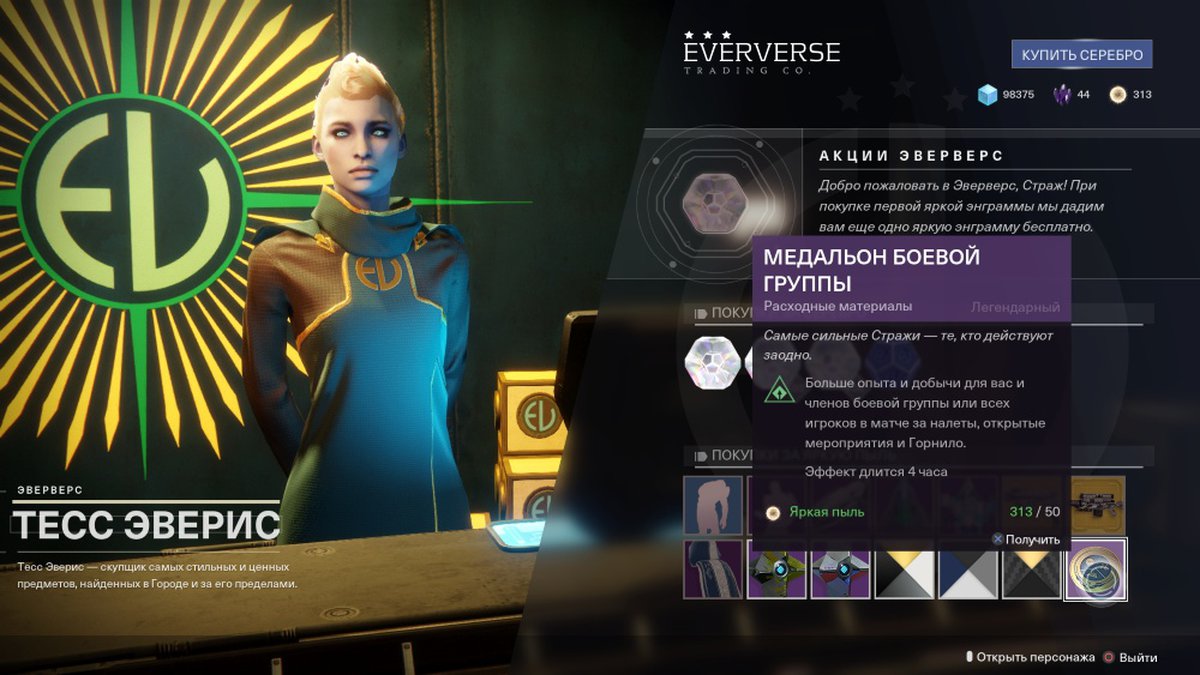 Медальон покупается за Яркую пыль, специальную валюту, получаемую при распылении предметов из ярких энграмм. Если повезет, то из очередной энграммы вам выпадет оболочка для Призрака, навсегда увеличивающая количество получаемого опыта.