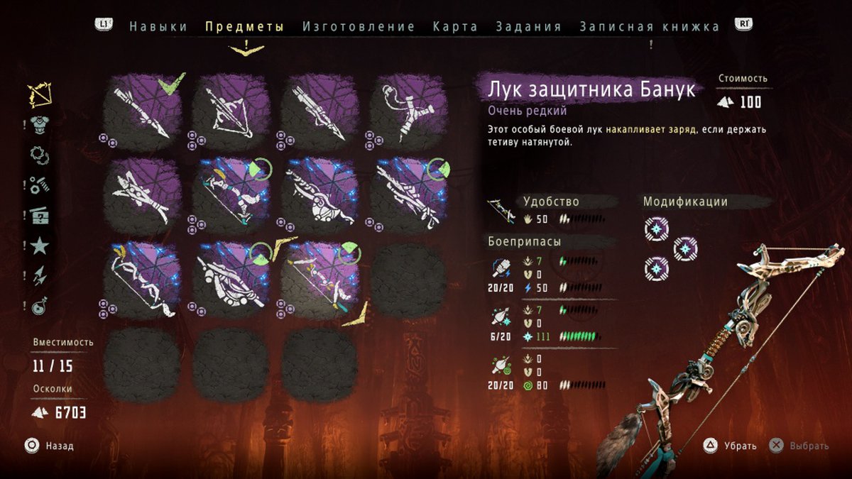 Начнем с предметов, продающихся у торговцев. Все три лука из дополнения The Frozen Wilds приобретаются у местных дельцов, отмеченных специальным синим значком. Для покупки нового оружия привычные металлические осколки не подойдут: вам понадобятся синие самоцветы, получаемые за прохождение заданий и поиск коллекционных предметов.