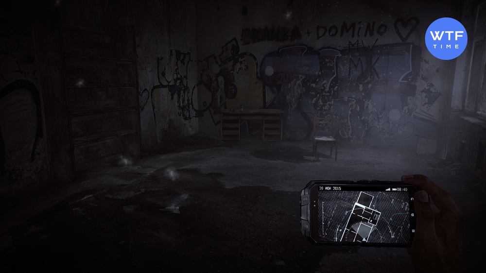 - Включаем УФ-свет и движемся по следу. В следующей комнате в углу вы увидите стол. На нем стоит пепельница, не проходите мимо.