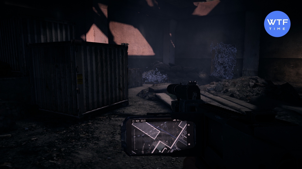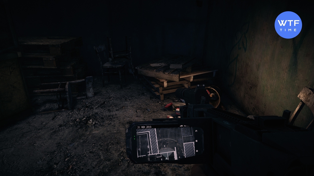 - Дальше нам следует пробраться на склад через левую дверь, а для этого первым делом нужно пролезть на территорию. Охранников оставьте в покое, а сами двигайтесь в правый нижний угол карты. Там вы найдете ворота, запертые с обратной стороны. Слева от них есть аномалия, уберите её и сможете отстрелить замок через появившуюся в стене дыру. Дальше идите к складу, маршрут вам должен быть уже знаком из предыдущей части. Охранников можно аккуратно снимать по одному или использовать аномалии для укрытия. Сразу как зайдете, осмотрите левую часть помещения. На одном из контейнеров лежит пачка сигарет, которую следует отсканировать.