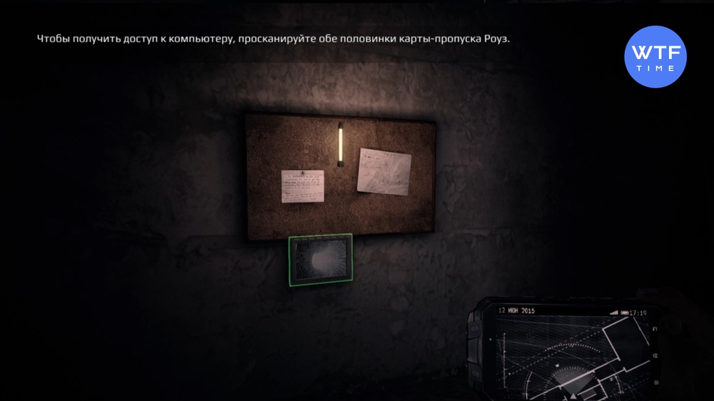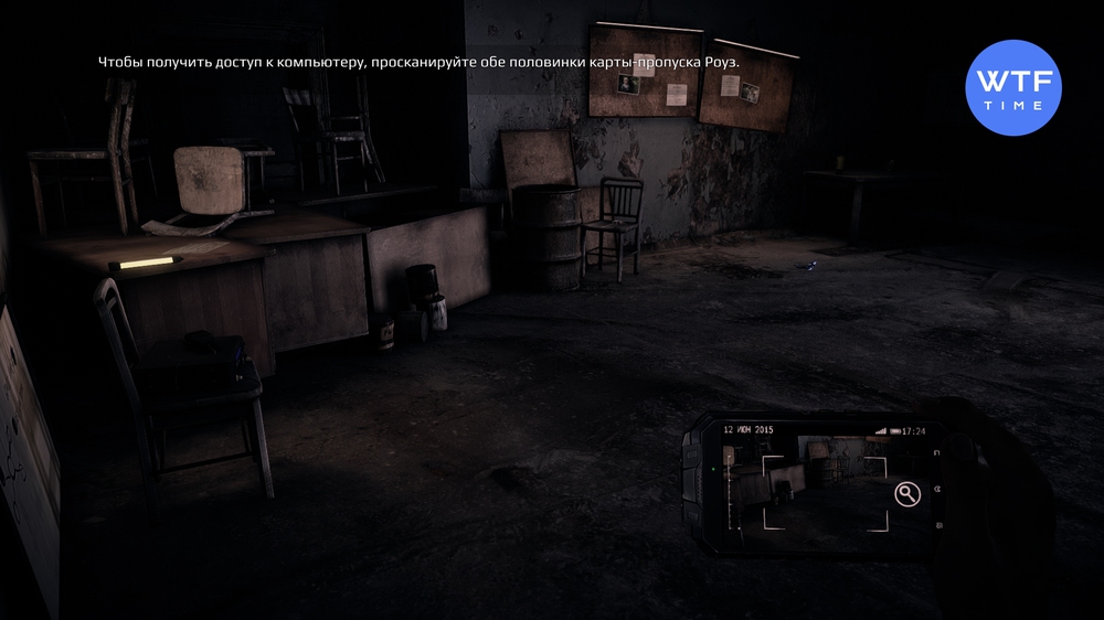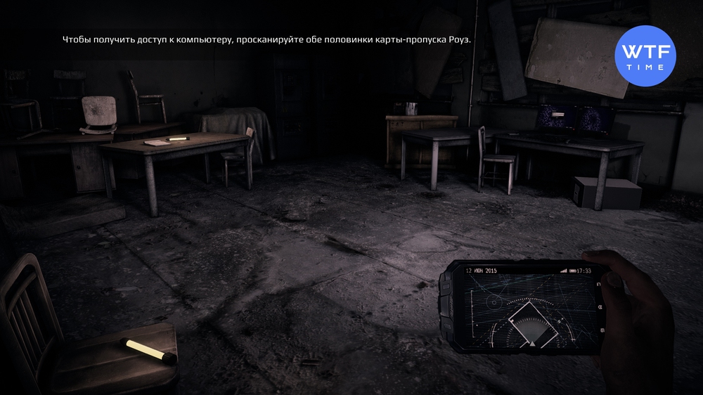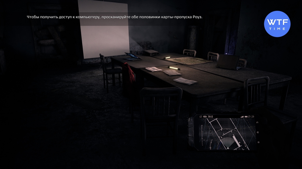 - Вот теперь самое время идти по следам. Они приведут вас в комнату с компьютером. Тут порядок действий такой: сначала сканируем вторую половинку пропуска, потом читаем записку, которая лежит рядом на столе. После этого мы сможем ответить на телефон, висящий на стенке у входа. На этом сбор вещдоков будет закончен и можно будет взаимодействовать с компьютером, чтобы завершить воспоминание и перейти в альтернативную память о похищении Грейс.