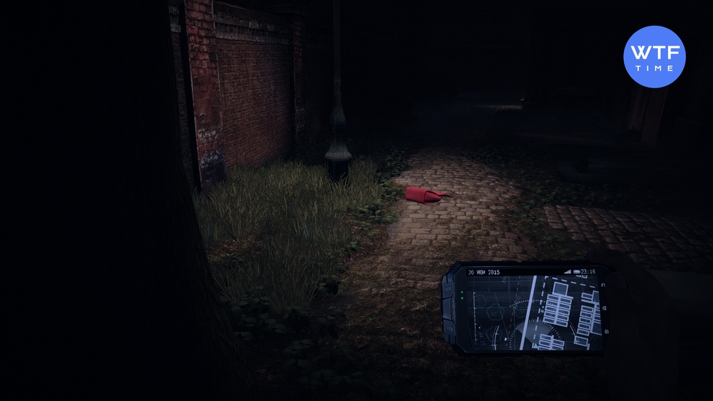 - Первый вещдок попадется вам в самом начале. Это красный кошелек, скан которого вам необходимо сделать. Пройти мимо у вас вряд ли получится. Дальше они будут попадаться вам еще не раз, но сканить все не нужно. Они просто указывают вам дорогу.